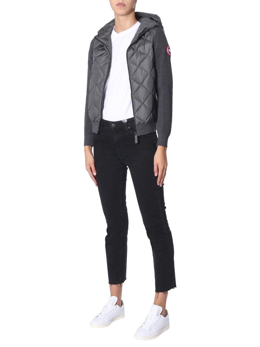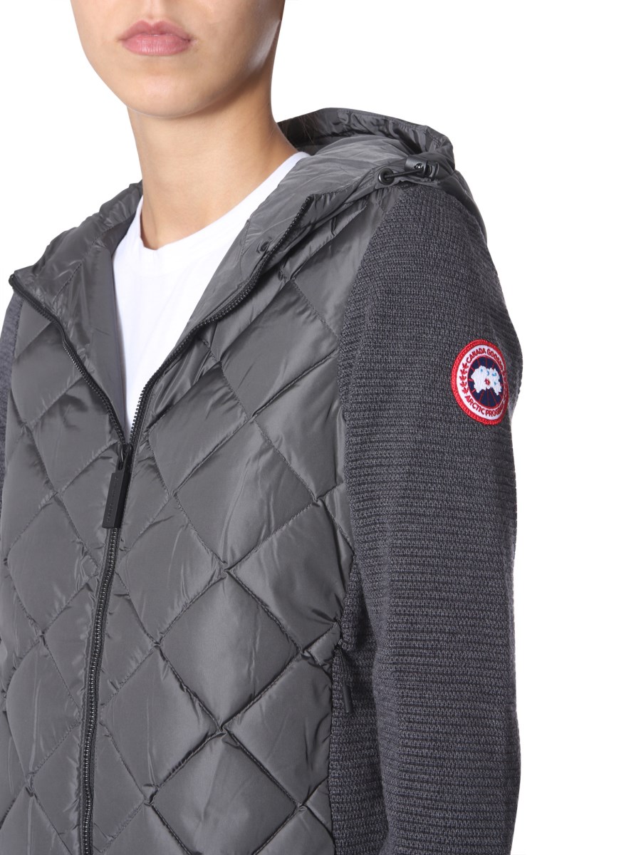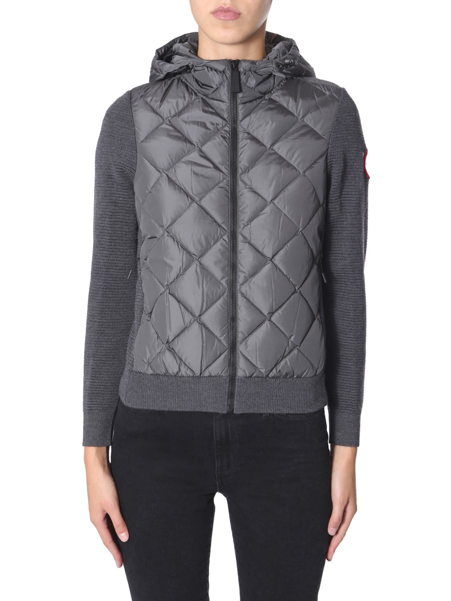 The Hybridge Quilted jacket by Canada Goose is a must-add to your winter wardrobe. This jacket keeps you warm and comfortable throughout the day. It has a zip closure at front and hood with coulisse. The jacket has two side pockets to keep the wallet, keys, and mobile phone.