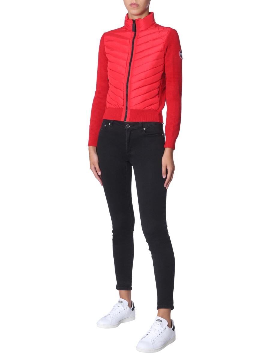 This "hybridge" jacket from Canada Goose will be a perfect pick for the breezy winter days. Made of 100% merino wool, the jacket is soft, lightweight and long lasting. It has a quilted front with zip closure accompanied by two side pockets with zip. This regular-fit jacket can be paired with jeans and boots for a complete look.