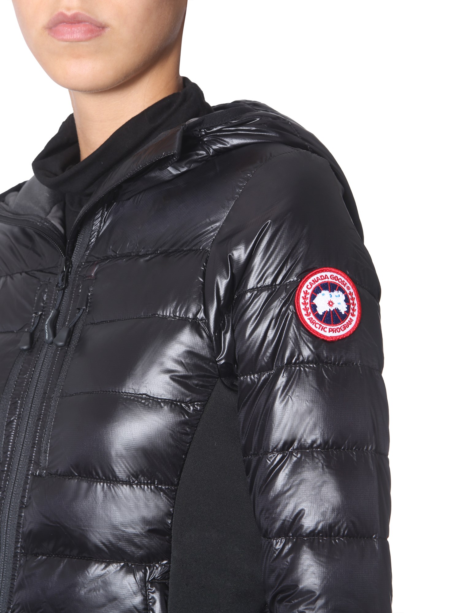 Protect yourself from chilly winter wind with this "highbridge light" down jacket from Canada Goose. The jacket is made of nylon fabric that has high tear resistance. It is stuffed with goose feather to provide maximum warmth and cosiness. The front zip closure gives a tight and secure fit.