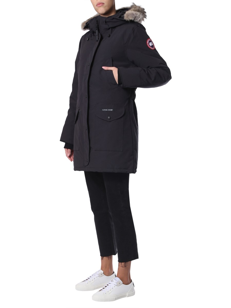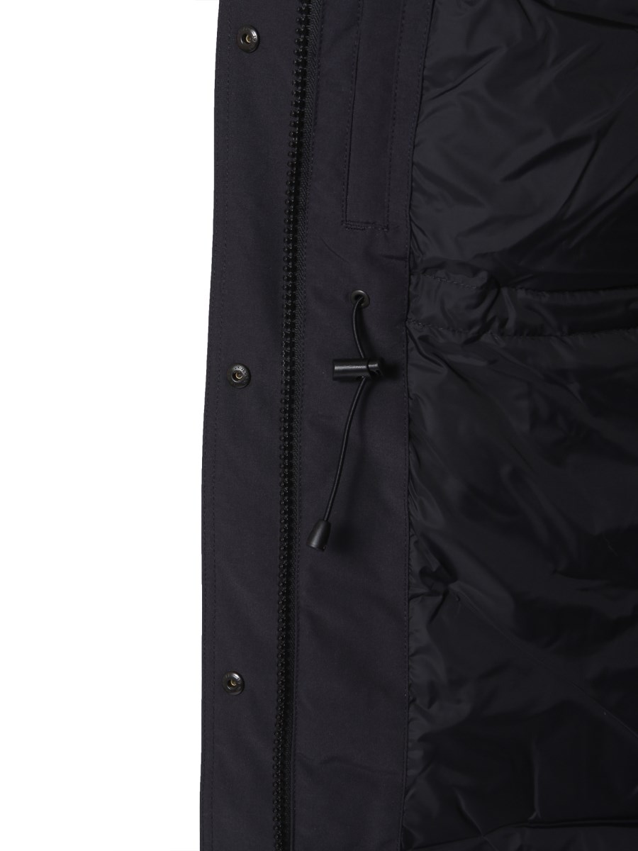Never let the chilly weather bother you by using this "trillium" parka from Canada Goose. Comprised of polyester and cotton fabric, the jacket is not only warm but also breathable. Don’t go with bulky look, this lightweight jacket has a down feather stuffing. The high neck hooded neckline has Coyote fur edge, which can be removed in case you don’t want it.