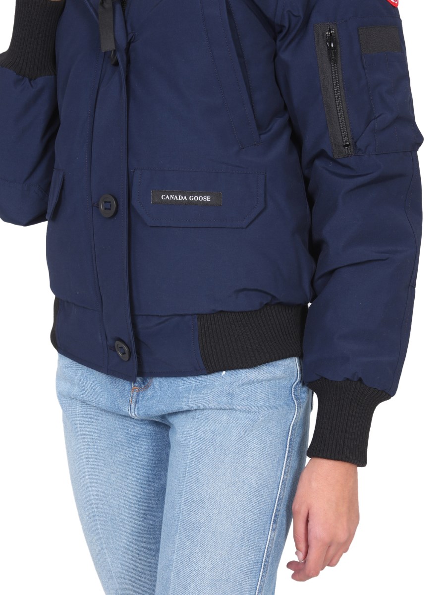 The zipper closure hooded neckline bomber jacket from Canada Goose is a sleek, sleek jacket that is a favourite for many fashion-forward women. It has a zip closure on the hood, which is functional for cold weather. It also has a zippered chest pocket, two front patch pockets and an elastic ribbed hem.
