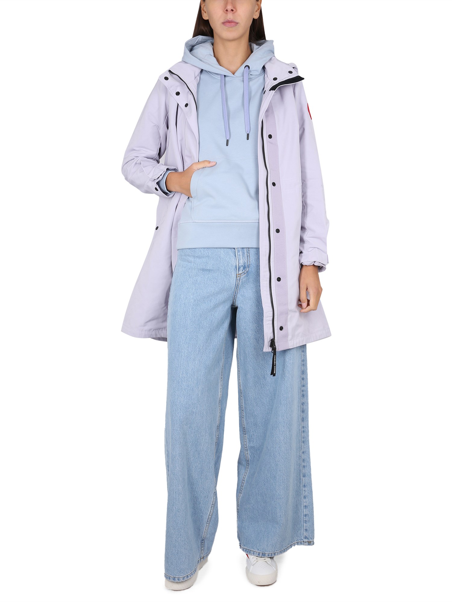 The Belcarra jacket from Canada Goose is an essential piece to any outfit. This lightweight jacket is made of a medium weight water resistant polyester, so it's both functional and fashionable. It's designed to keep you warm and dry in the winter while still looking sleek and stylish.