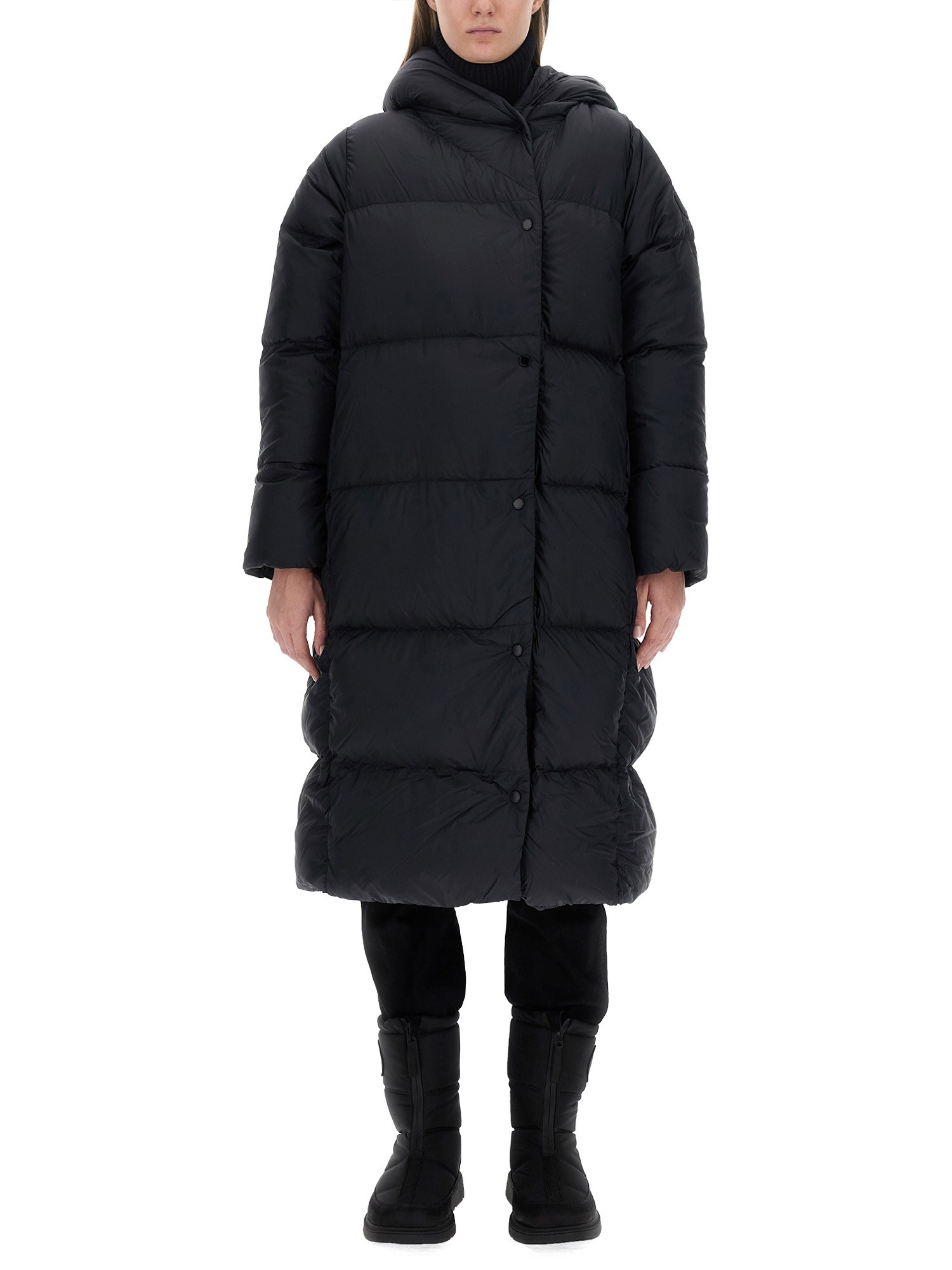The Rhoda Parka is made with Lumina, a recycled fabric that's water-repellent and wind resistant with a super-soft sheen finish. It features a fixed wrap hood, off-centred snap button closure and an oversized quilt-through design. Offering premium warmth, the Rhoda is the ultimate choice for everyday outings.