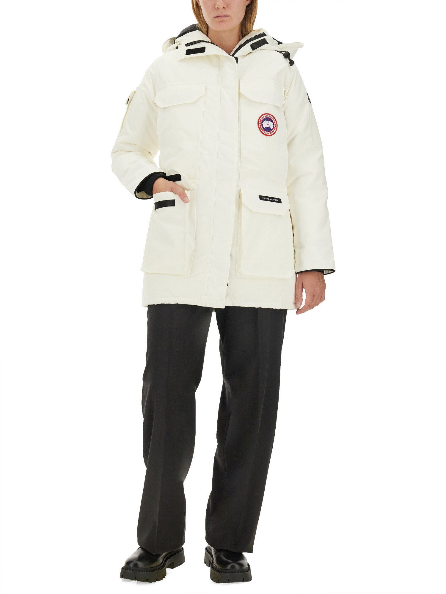The Expedition Parka from Canada Goose is a premium outerwear piece designed for extreme cold weather conditions. Crafted with a durable Arctic Tech fabric, it offers exceptional insulation and wind resistance, ensuring warmth and comfort in frigid temperatures. The parka features a spacious hood with a removable fur ruff, multiple pockets for practicality, and a longer cut for enhanced coverage. Ideal for outdoor adventures or urban environments, this parka combines functionality with a sleek aesthetic, making it a must-have for those who demand performance and style.
