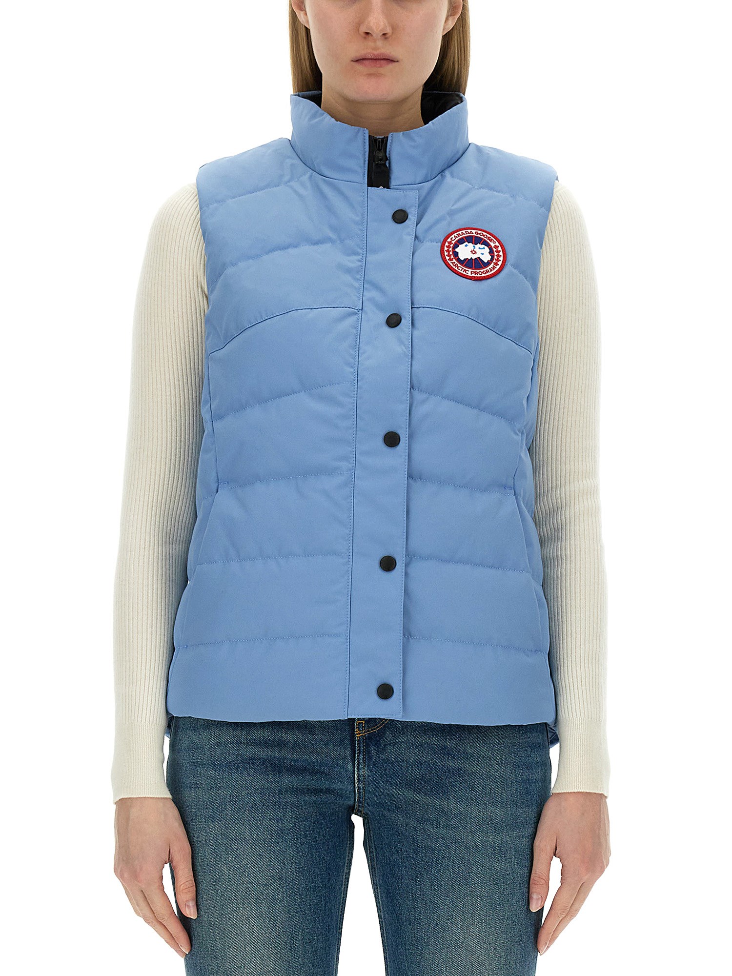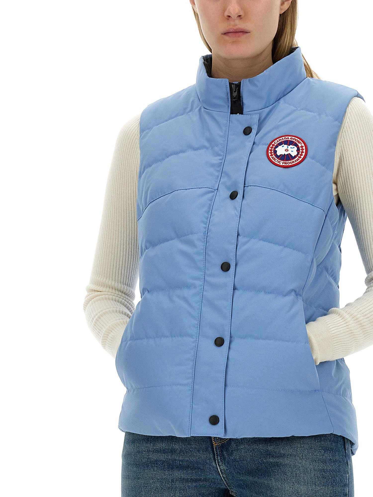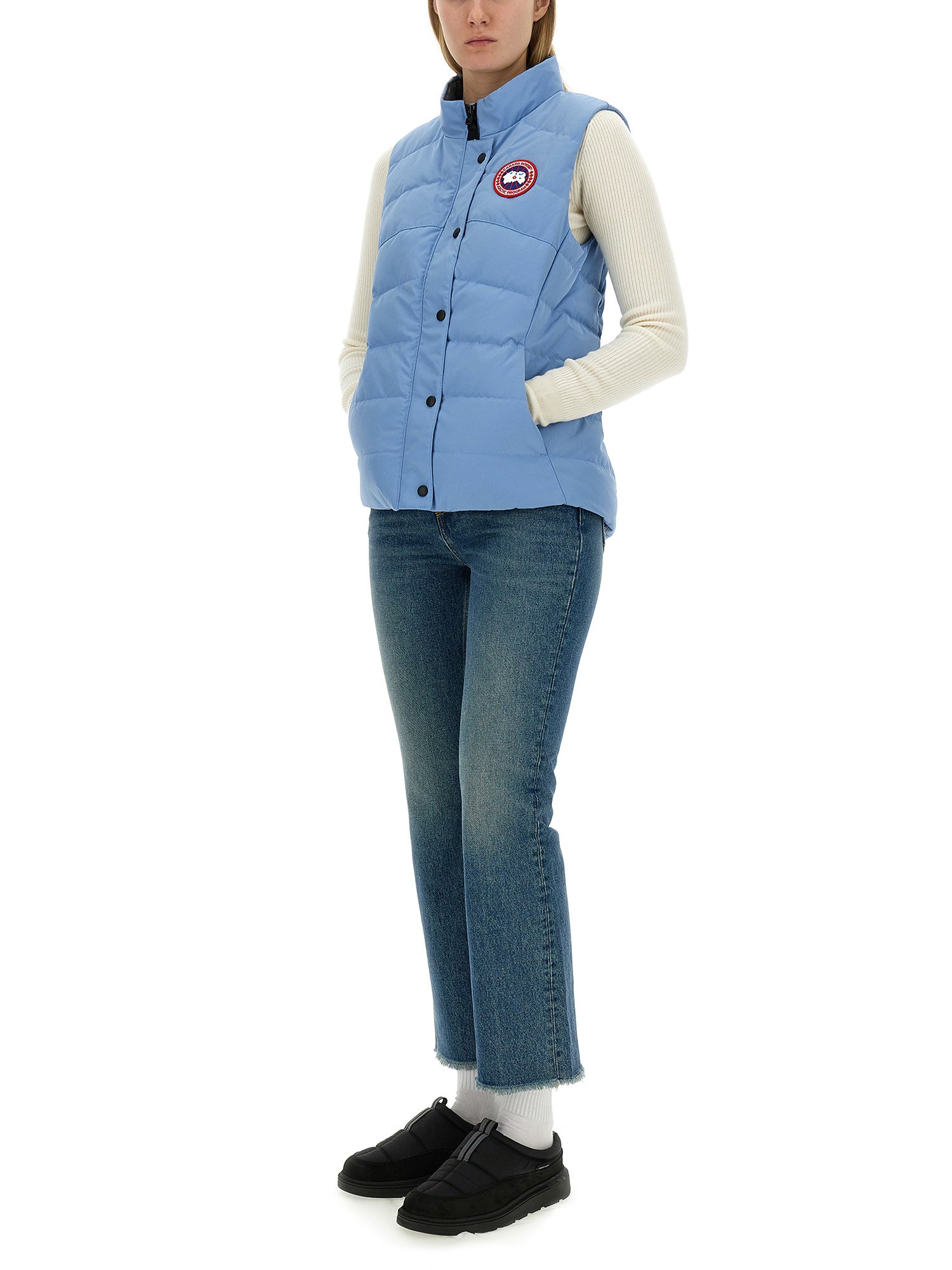 Stay warm and stylish with this padded vest featuring the iconic logo from Canada Goose. Made with high-quality materials, this vest is designed to provide both comfort and durability. Whether you're hitting the slopes or simply running errands in the city, this vest is the perfect addition to your wardrobe. Show off your love for Canadian craftsmanship and stay cosy in colder weather with this must-have piece from Canada Goose.