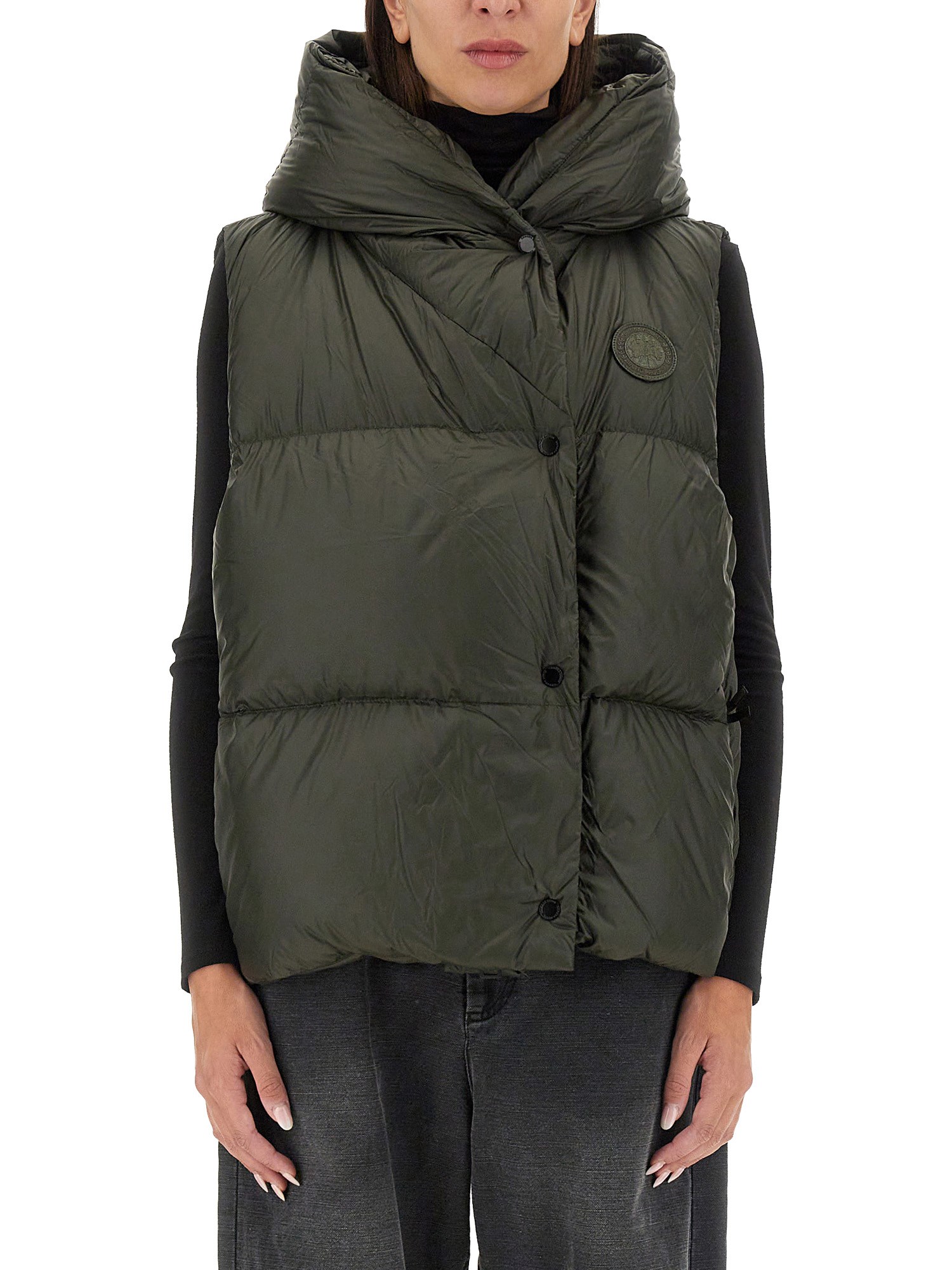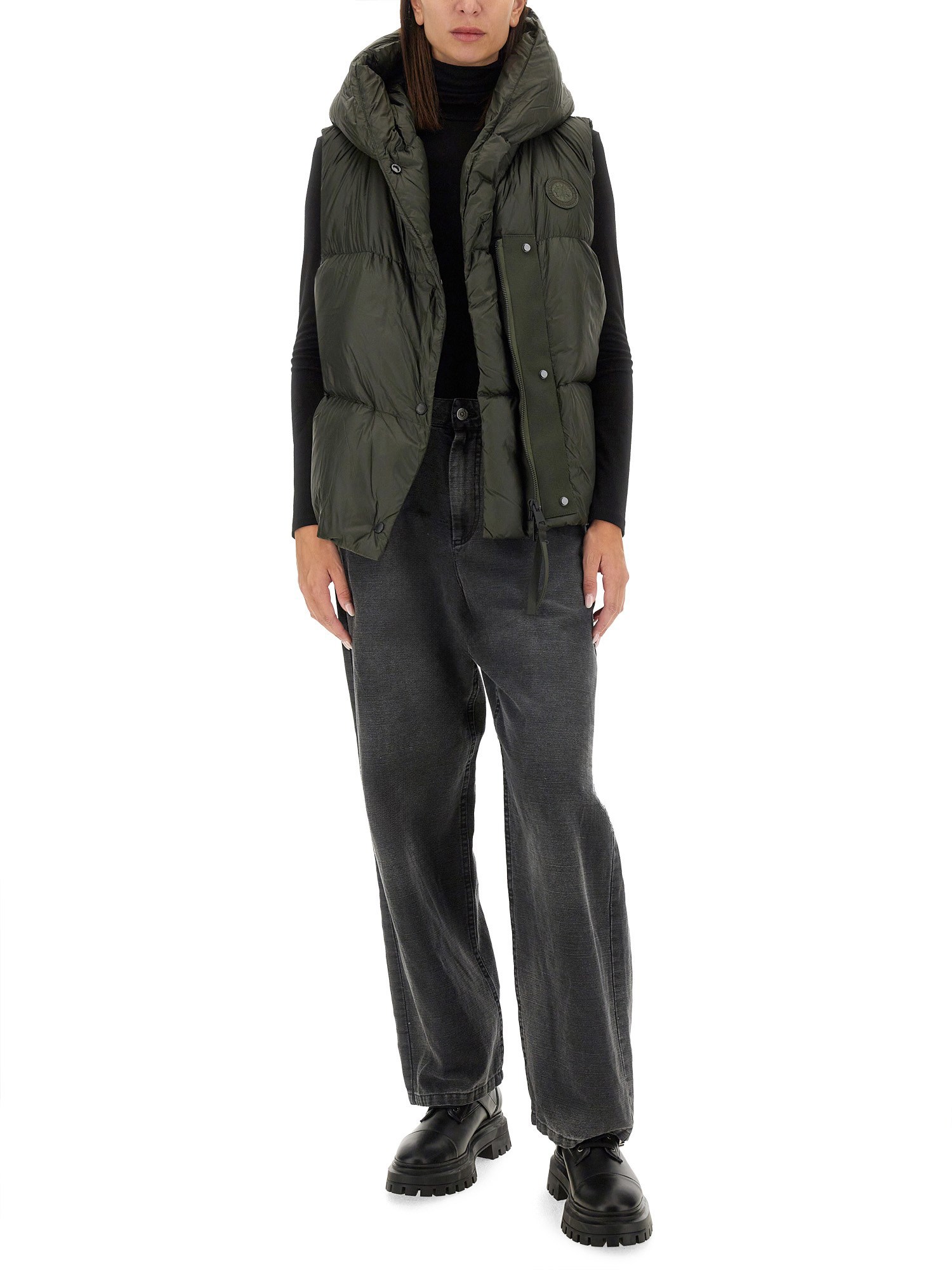 The Rhoda Vest from Canada Goose is a versatile outerwear piece designed for both style and functionality. Crafted with high-quality materials, it offers exceptional warmth and insulation, making it ideal for cold weather conditions. The vest features a sleek silhouette, allowing for easy layering over various outfits, while its durable construction ensures long-lasting wear. With practical pockets and a refined finish, the Rhoda Vest is perfect for outdoor adventures or urban settings, embodying the perfect blend of performance and contemporary fashion.