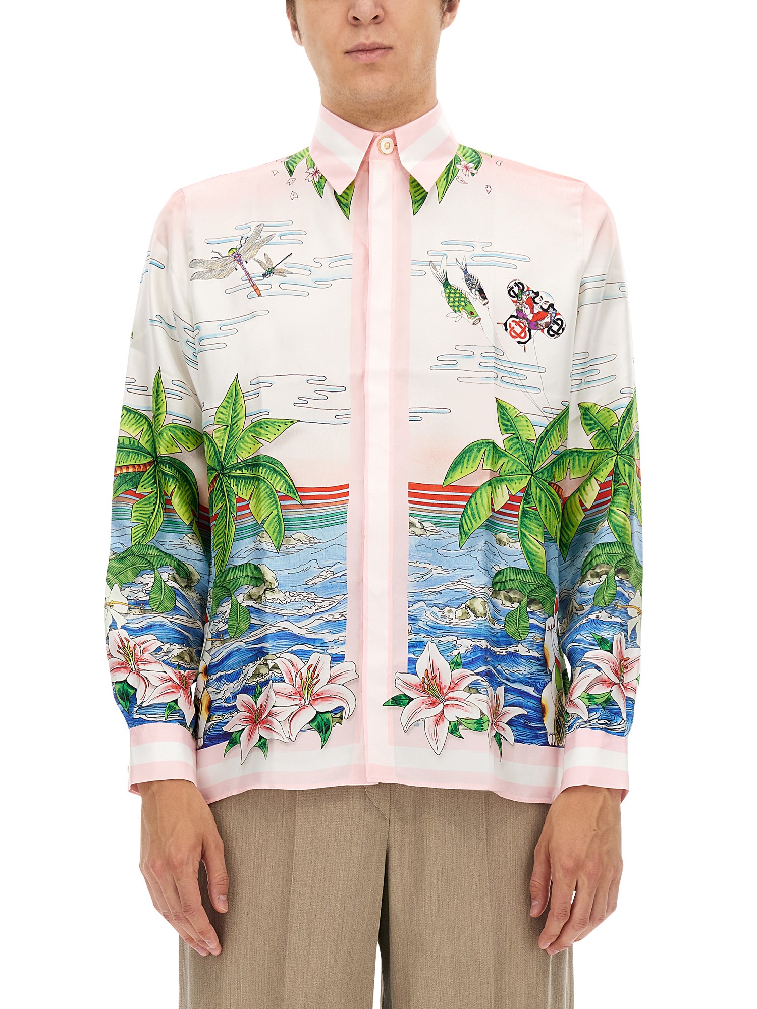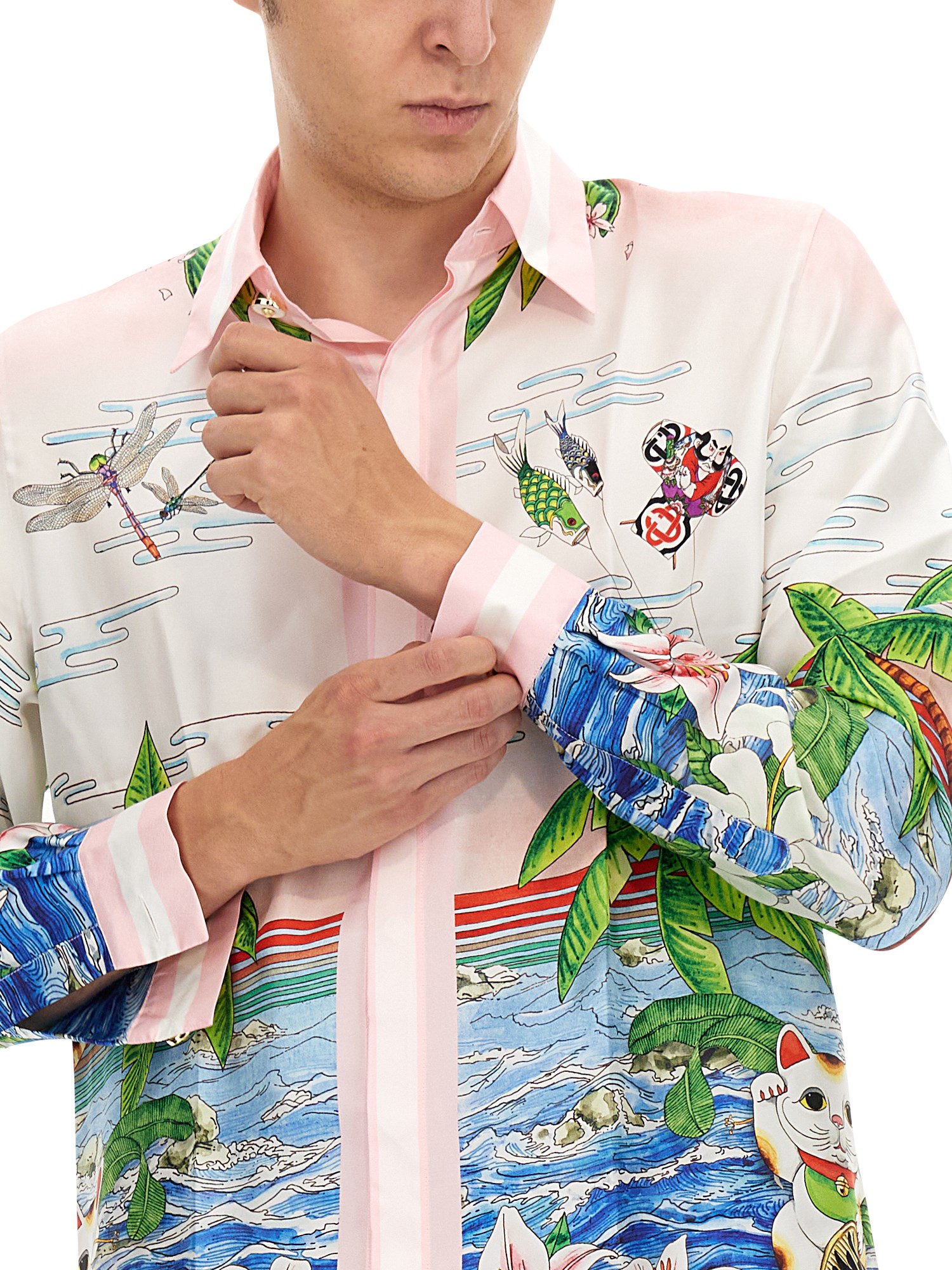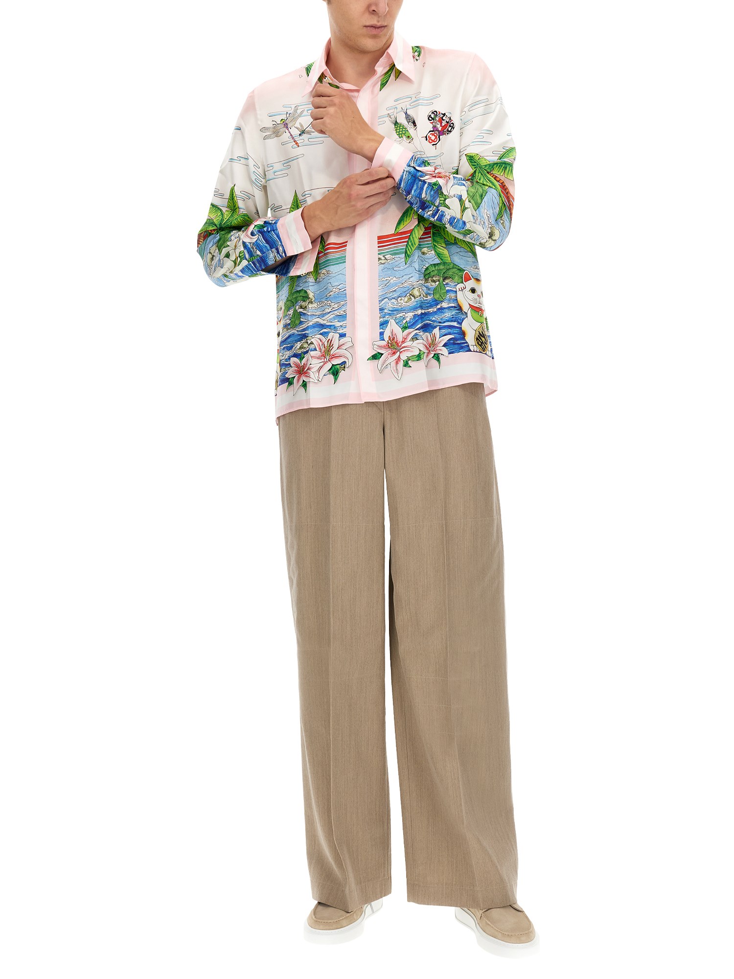 - POINTED COLLAR- FRONT BUTTON CLOSURE- ALL OVER PRINT- 100% SILK- MODEL IS 185 CM TALL AND WEARS SIZE S