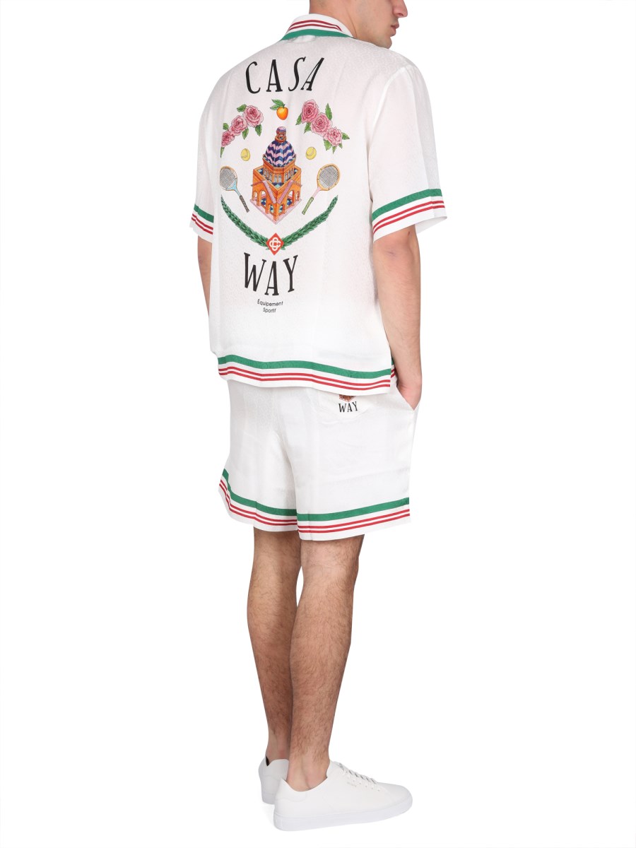A silk shirt from Casablanca is a beautiful shirt that is very versatile and can be dressed up or down. This classic front button closure shirt features a slim fit and is made of a super soft, breathable material. This shirt will keep you cool in the summertime and warm in the wintertime.