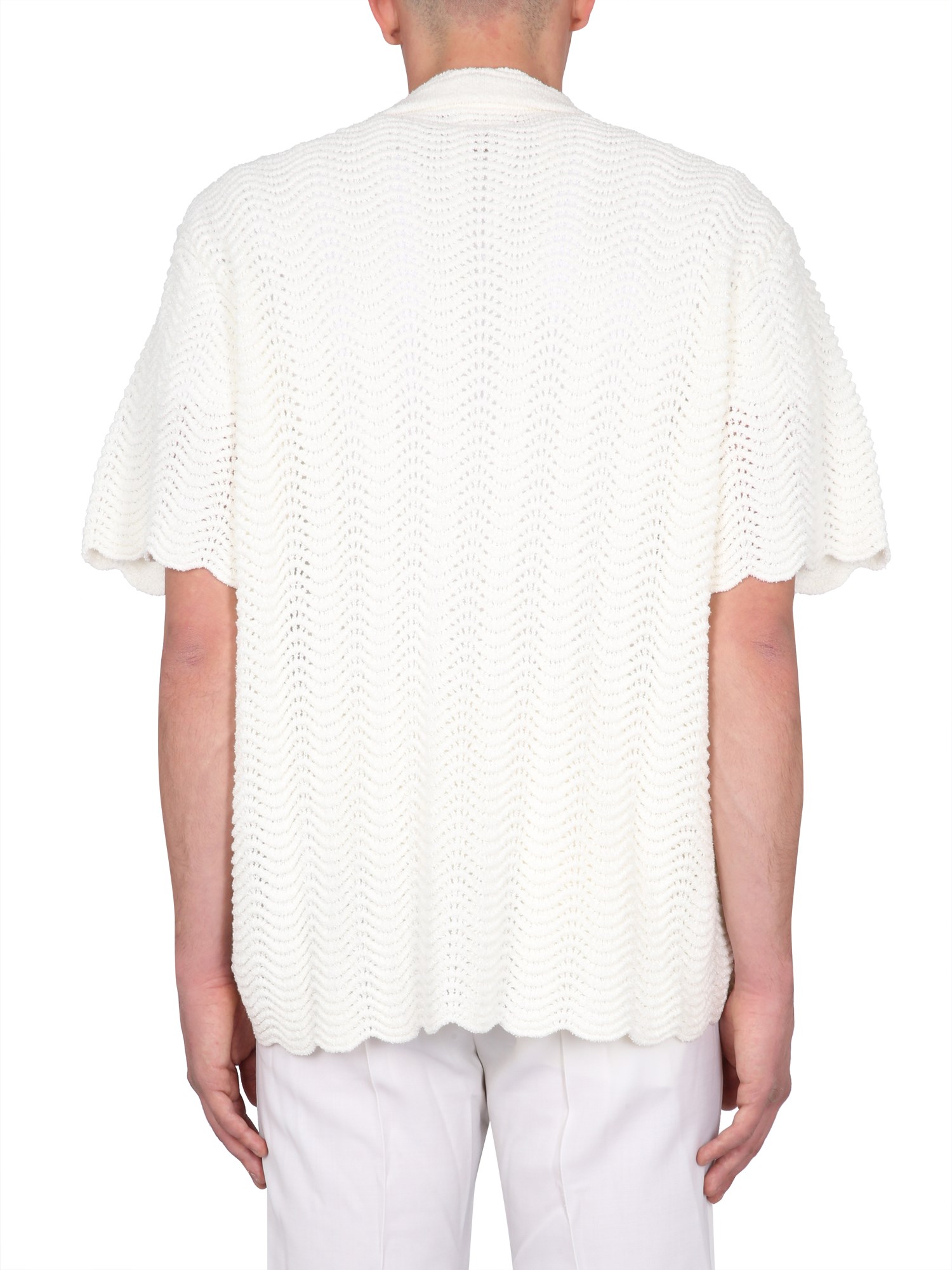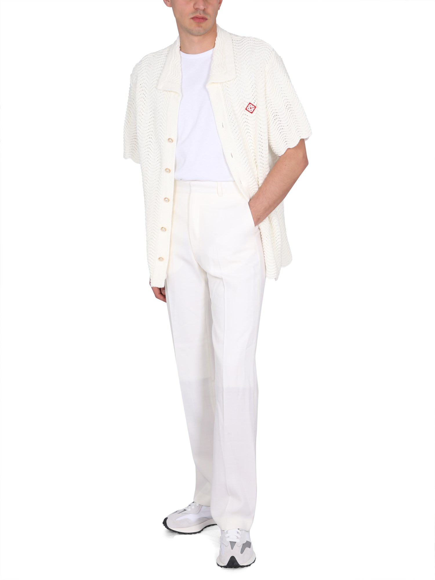 You’ll make a statement in this shirt by Casablanca. This shirt has a button-up front and a collar. It is made of 100% cotton and has a cool logo patch on the chest. The shirt is a regular fit and is great for casual wear. The regular fit is perfect for layering and wearing with shorts or jeans.