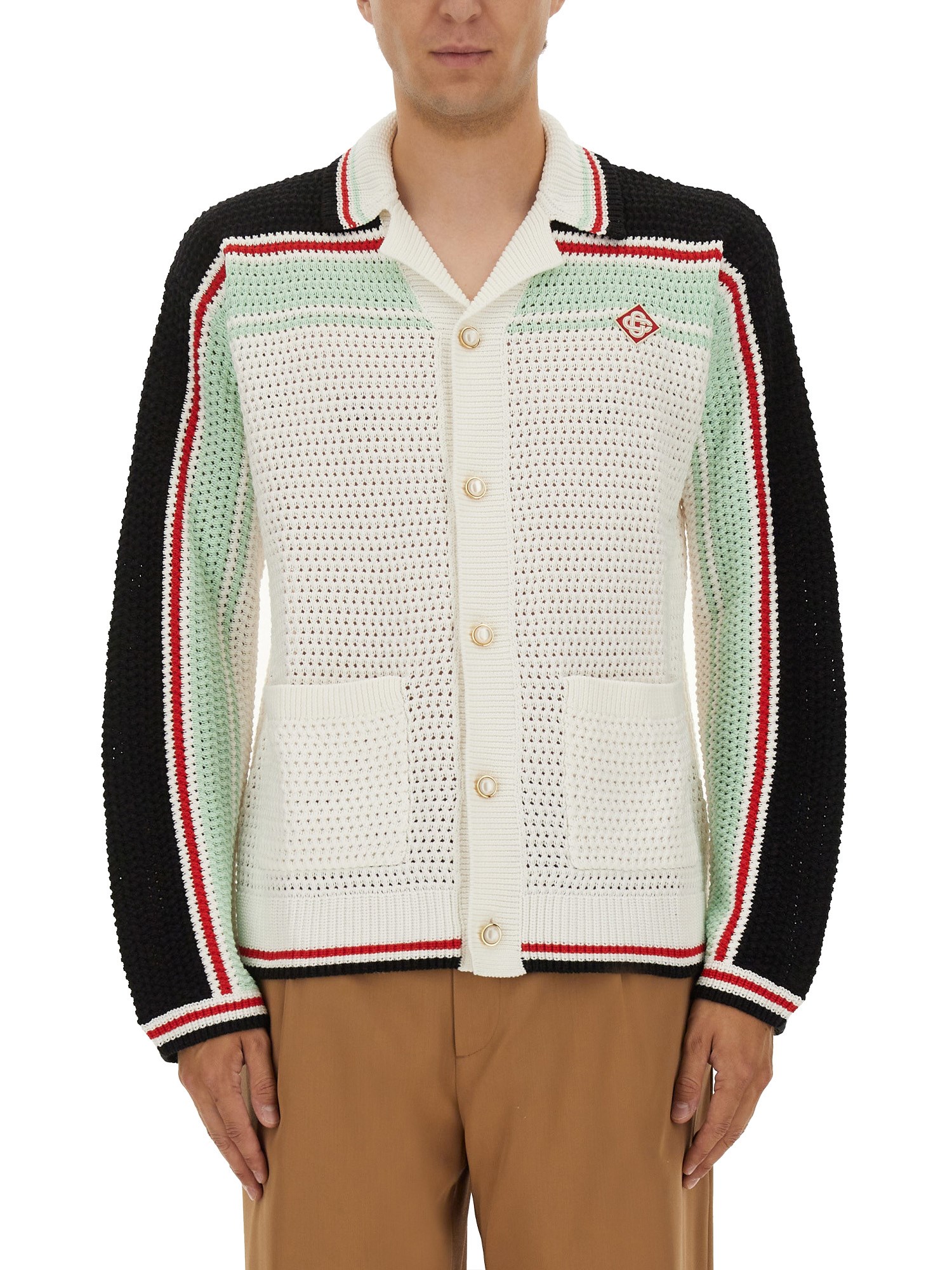 CROCHETED COTTON KNIT TENNIS SHIRT
