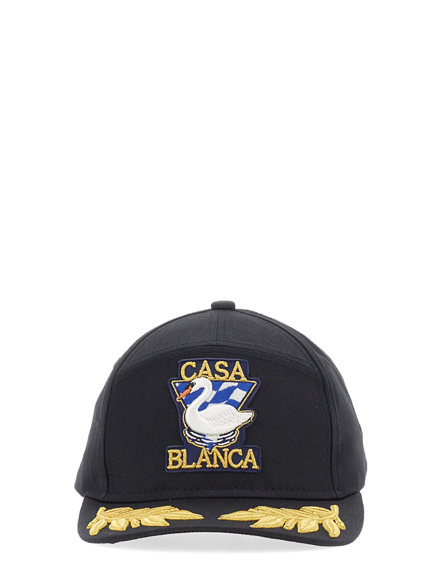 This baseball cap from the house of Casablanca has a sporty design with an adjustable closure that makes it easy to take on and off. It features a hard visor, eyelets for breathability, and a button on the top. The classic hat is crafted from pure organic cotton, the hat has logo embroidery on the front.