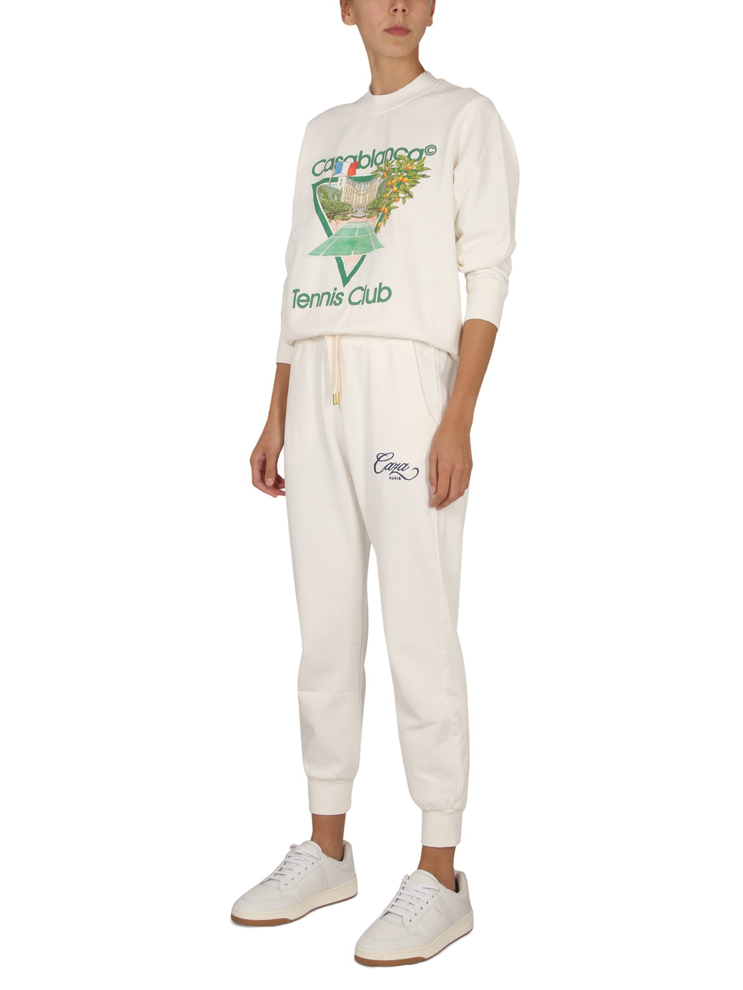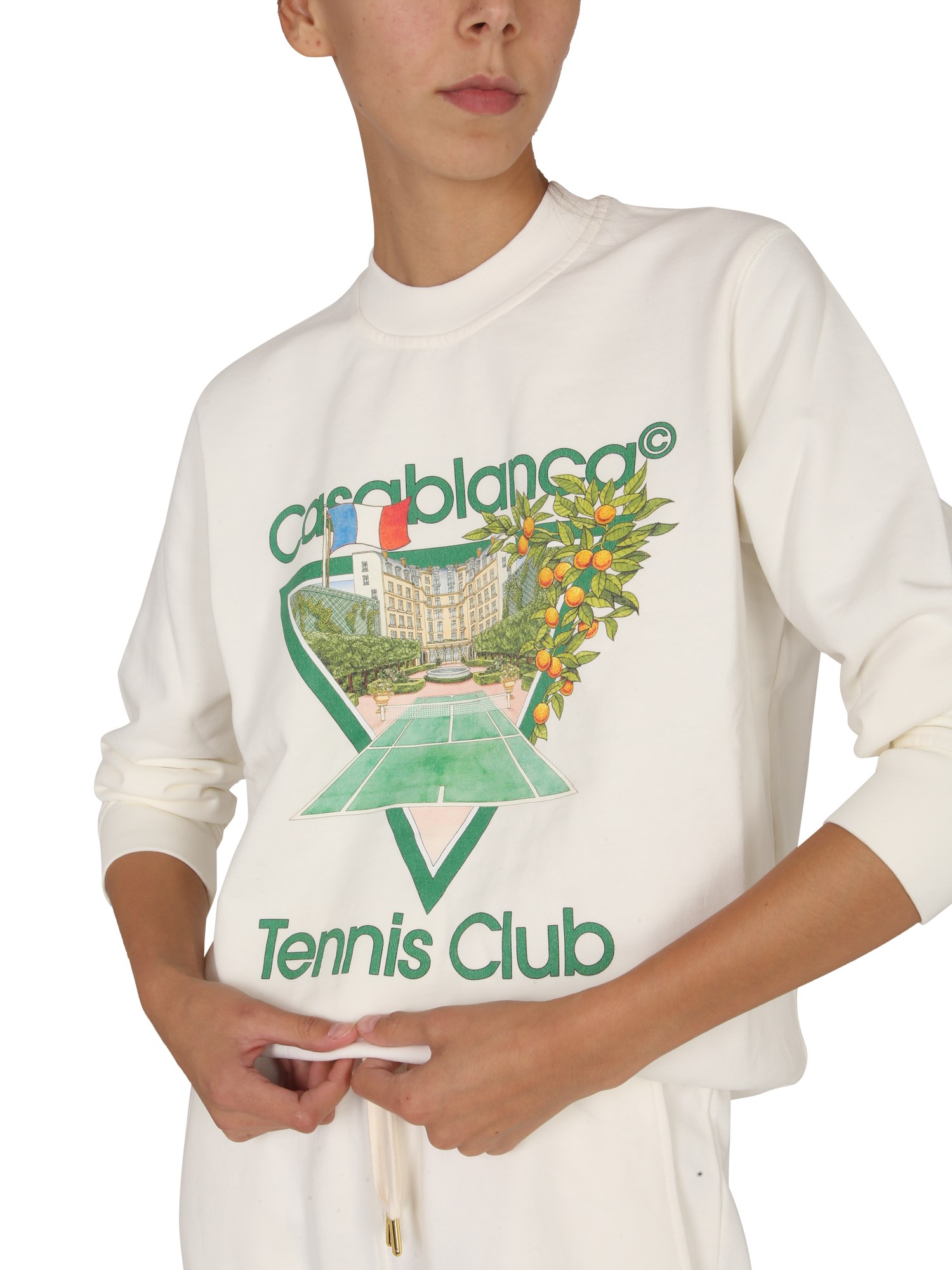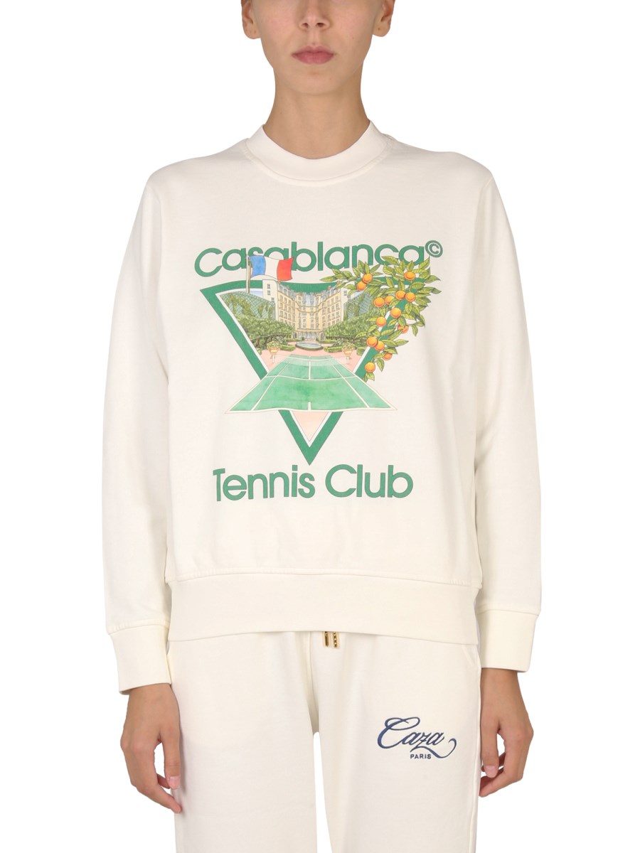 This crewneck sweatshirt from the house of Casablanca is soft and cosy, with a Tennis Club print on the front that gives it a luxurious feel. The style is a modern take on the traditional sweatshirt, with long sleeves and a regular fit. Made from blended cotton, this sweater is warm and cosy.