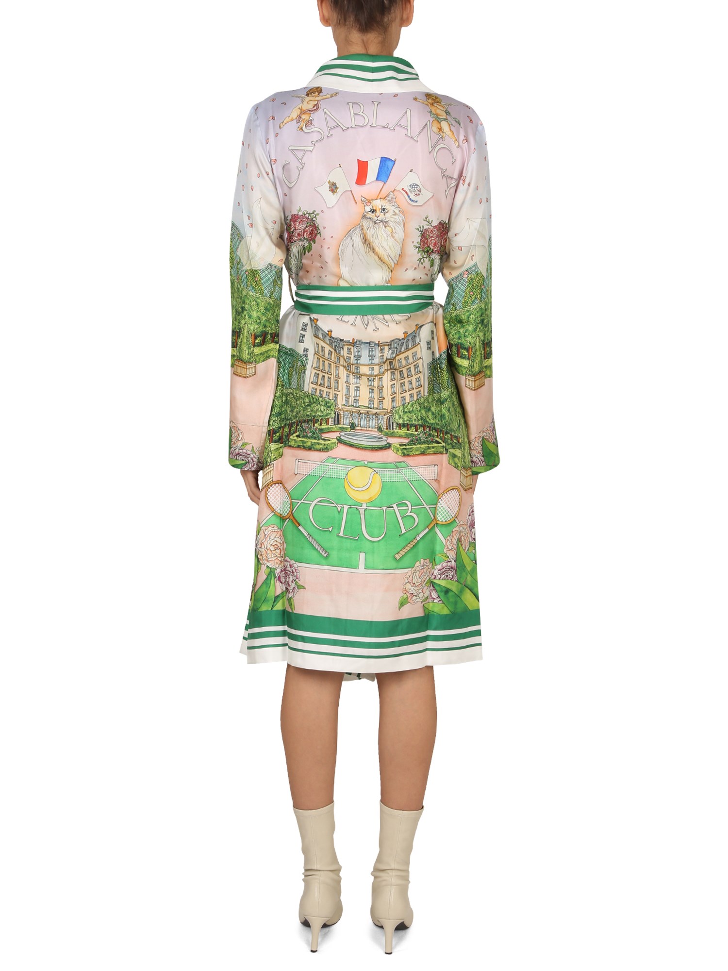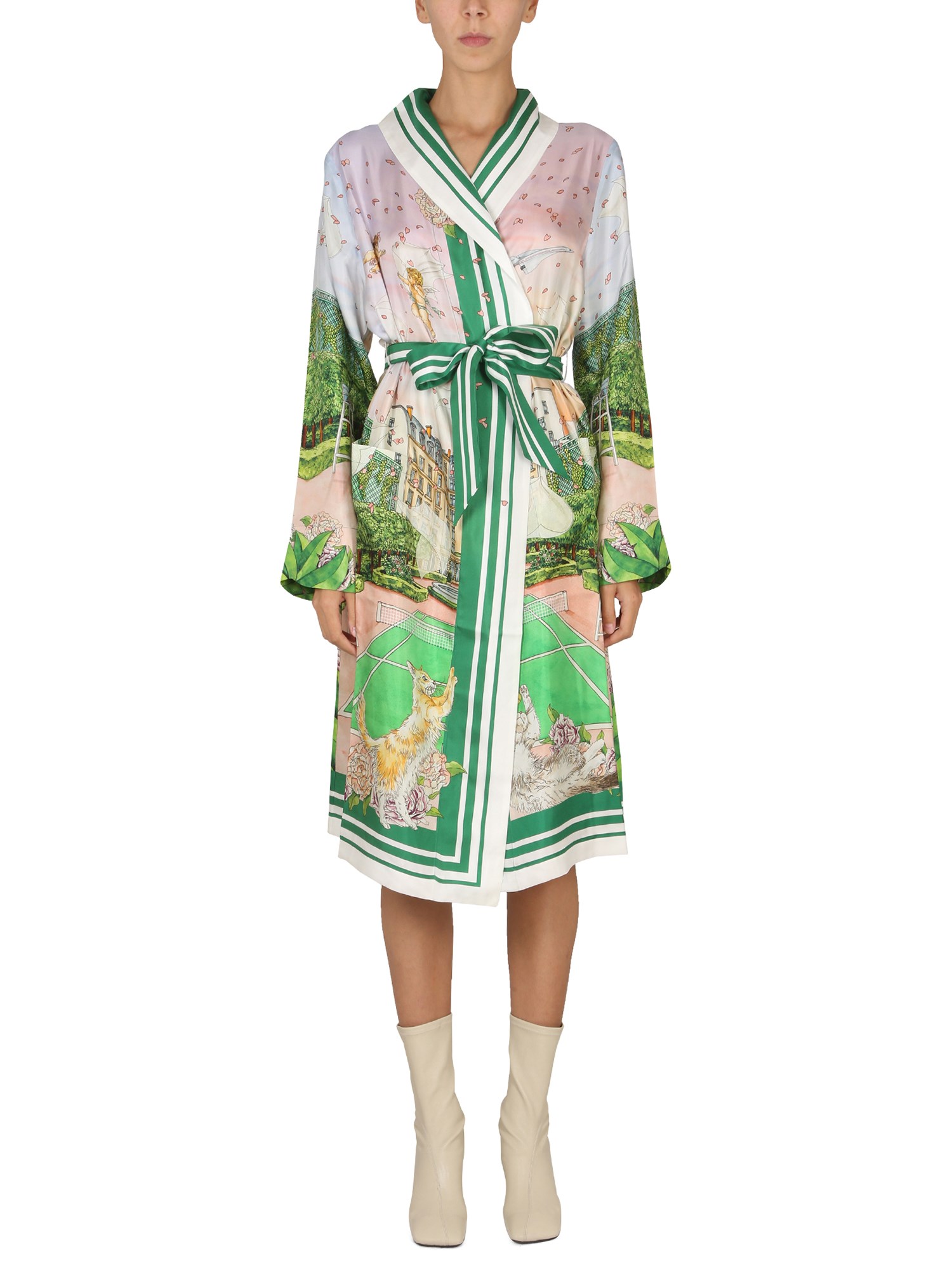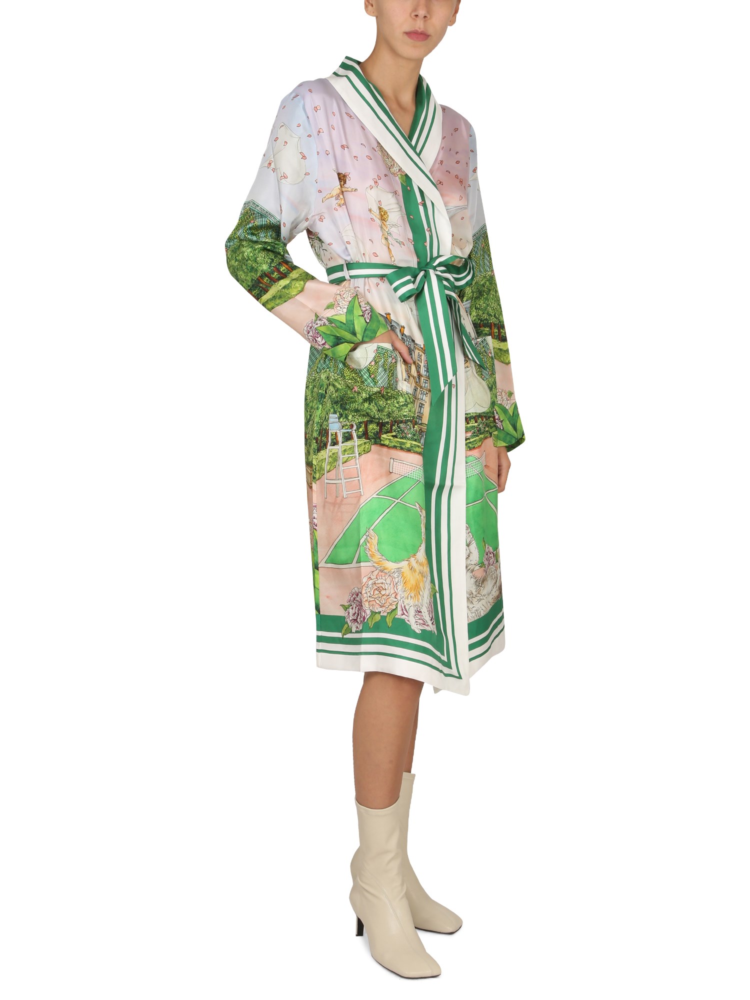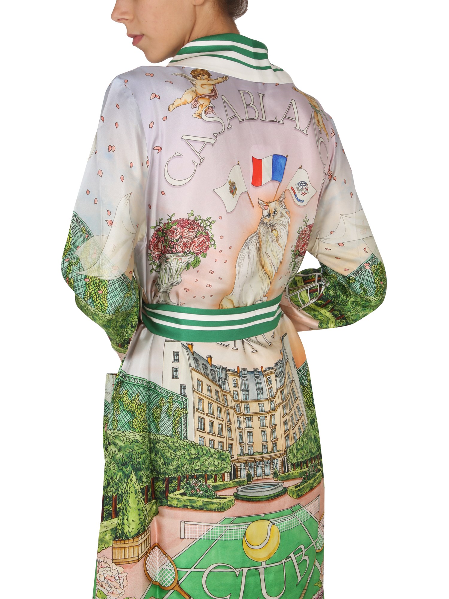 This luxurious silk robe from Casablanca has a tie belt closure. This robe is the perfect way to add a touch of luxury to your bathrobe. The fabric is a luxurious and lightweight silk, making this robe perfect for any season. The soft material is also a perfect accessory for the cold winter months.