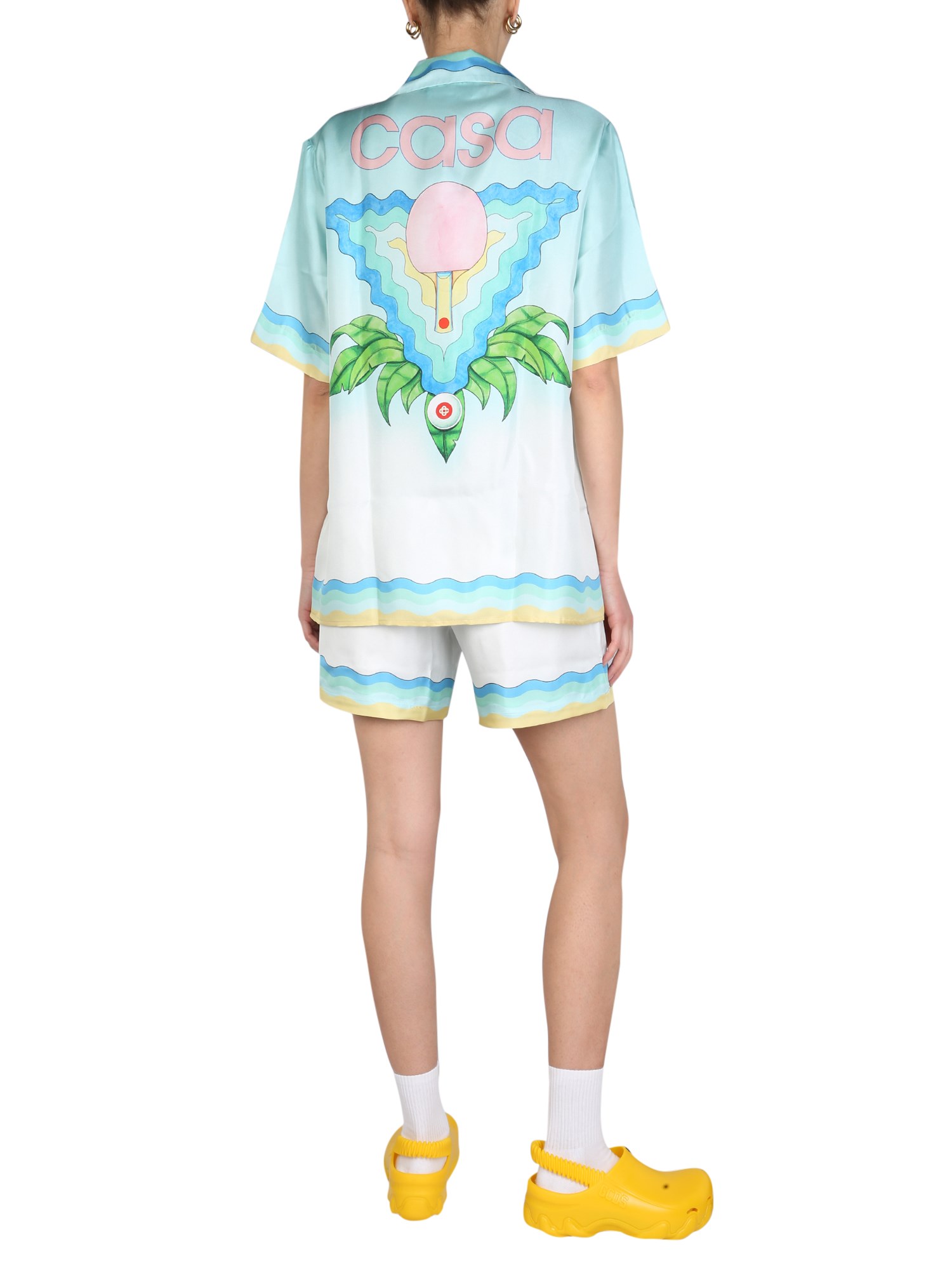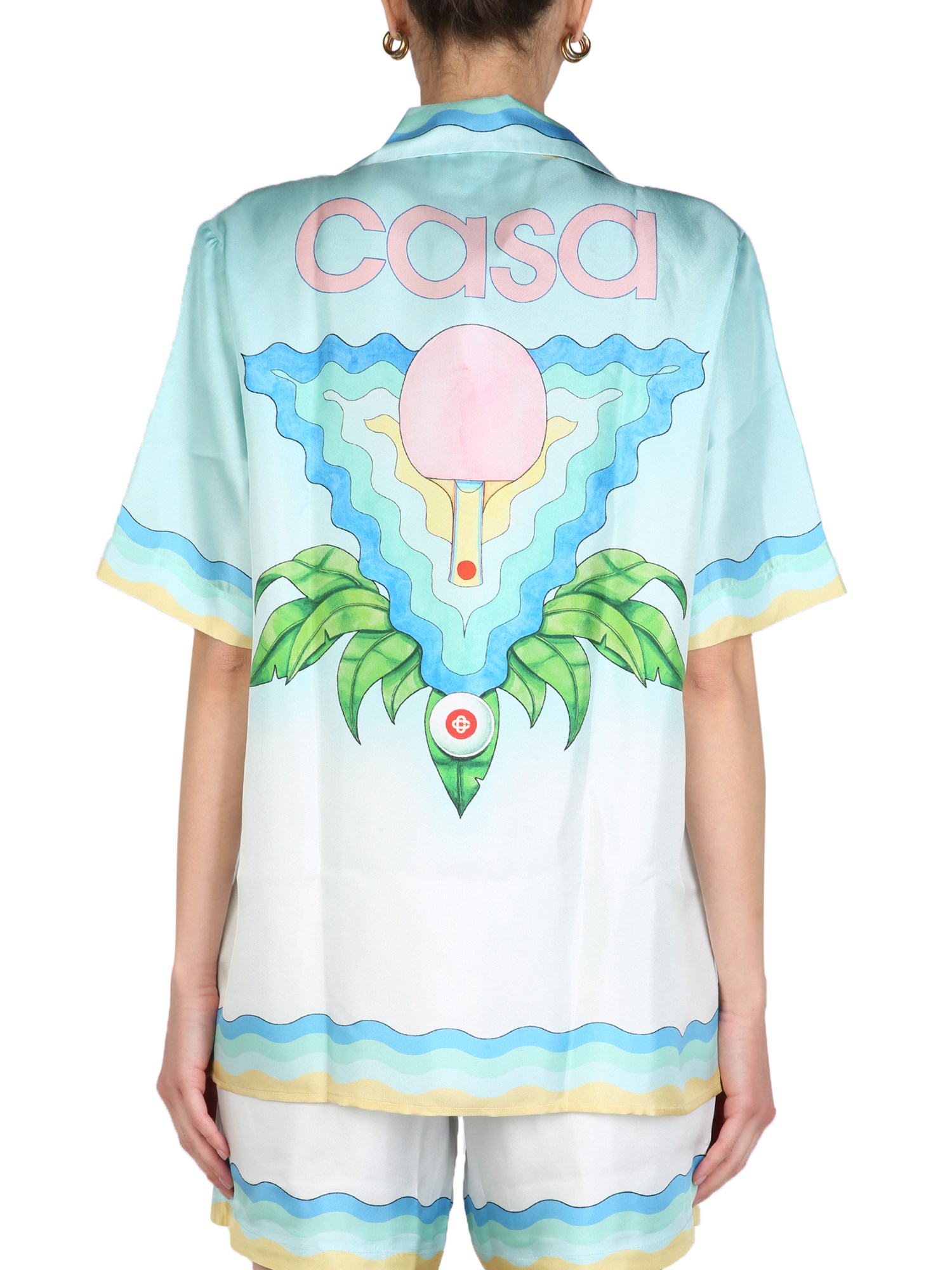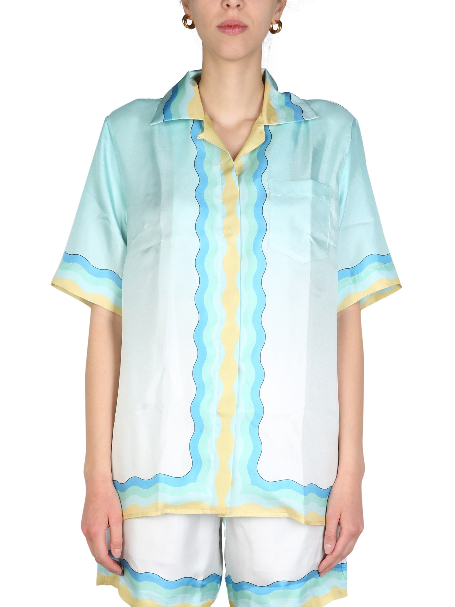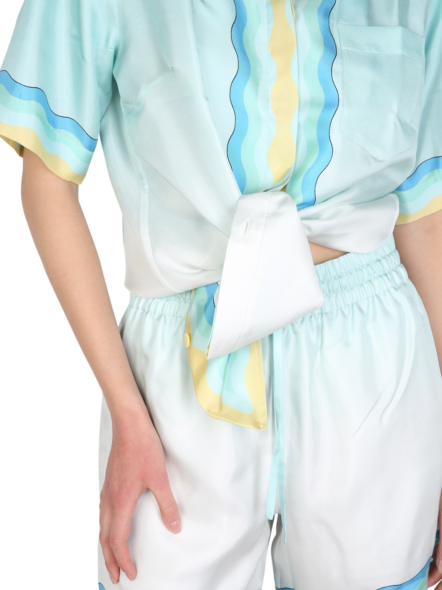 - BOWLING COLLAR- FRONT HIDDEN BUTTONS CLOSURE- CHEST POCKET - MULTICOLOR PRINT- 100% SILK- MADE IN ITALY- MODEL IS 180 CM AND WEARS SIZE 36 FR