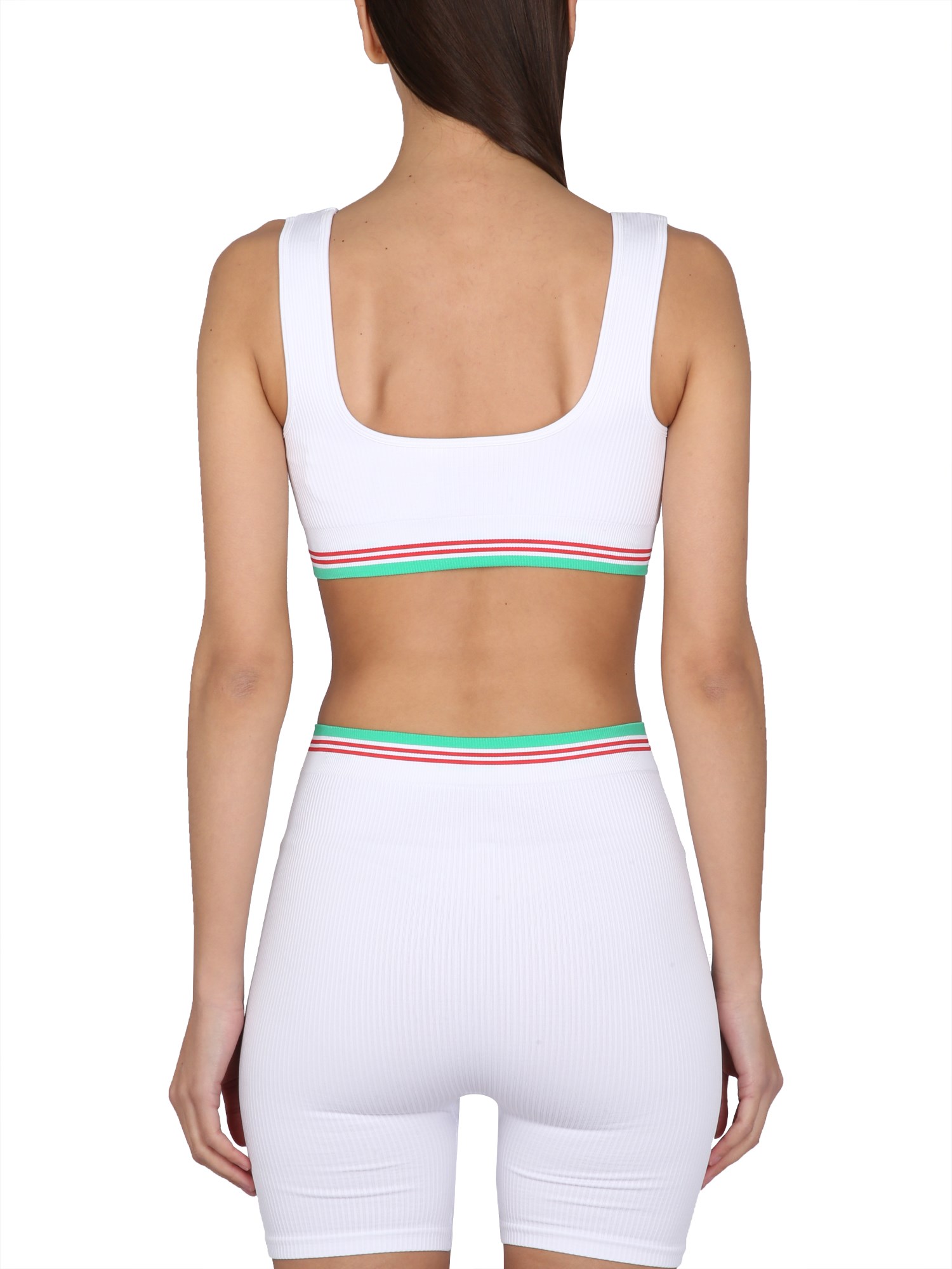 - SQUARE NECKLINE- RIBBED DESIGN- LOGO DETAIL- 81% POLYAMIDE, 16% POLYESTER, 3% ELASTANE- THE MODEL IS 180 CM TALL AND WEARS ONE SIZE FITS ALL
