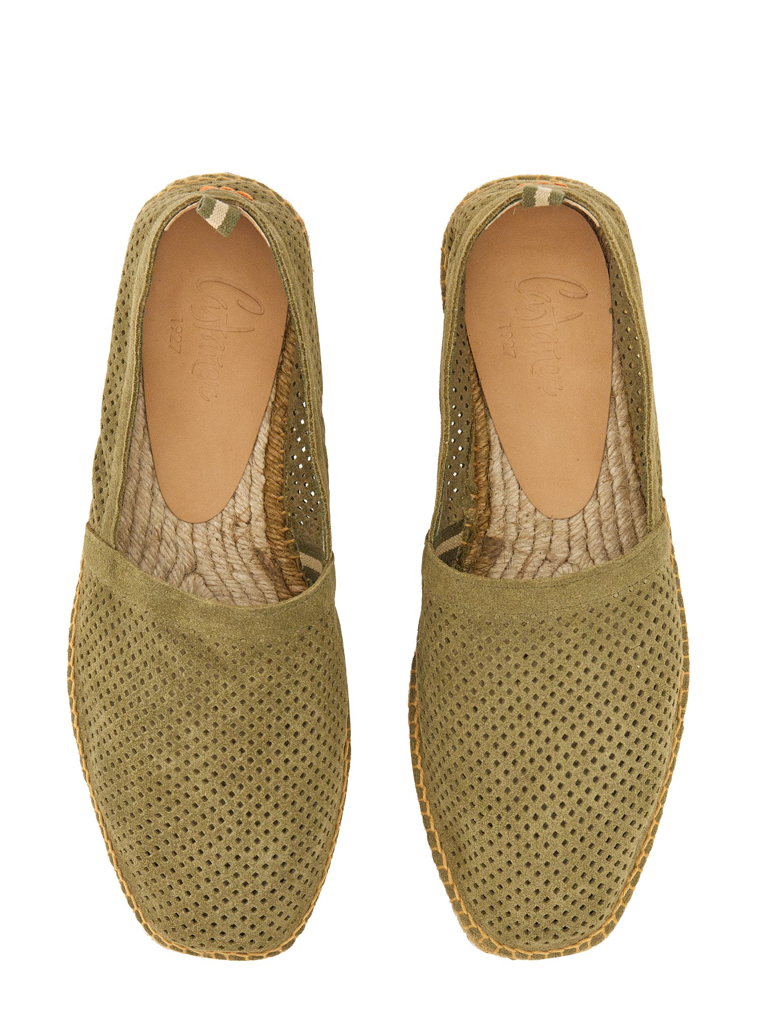 Dress to impress in these Castaner suede espadrilles that combine style and comfort. They'll be comfortable on your feet and simple to put on because they're composed of leather and perforated suede. These espadrilles are perfect for the spring and summer thanks to their perforated suede upper. They also have a flat sole and a thin EVA midsole, making them comfortable to wear when walking.