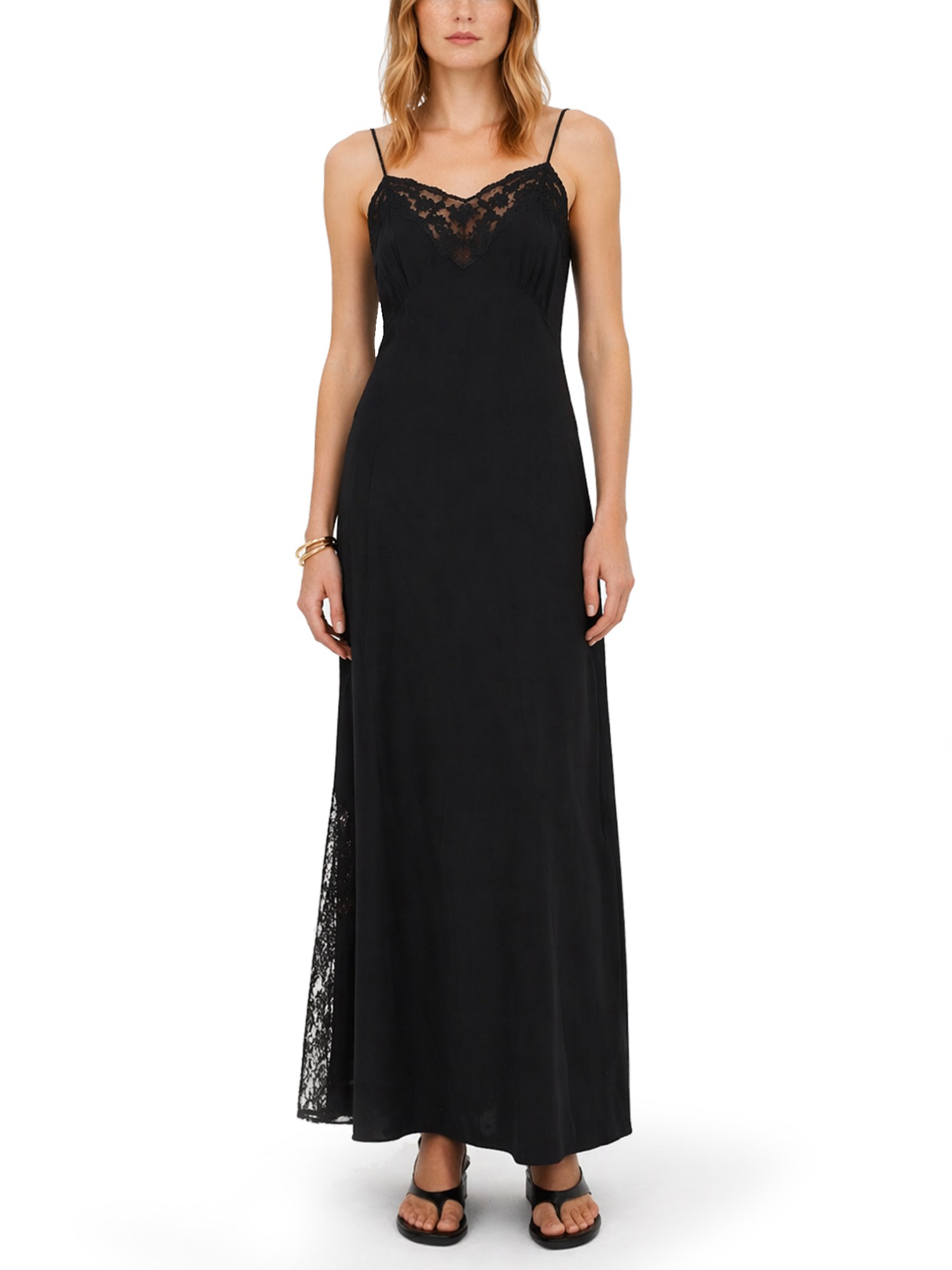 ABITO LUNGO IN SETA CON DETTAGLIO IN PIZZO