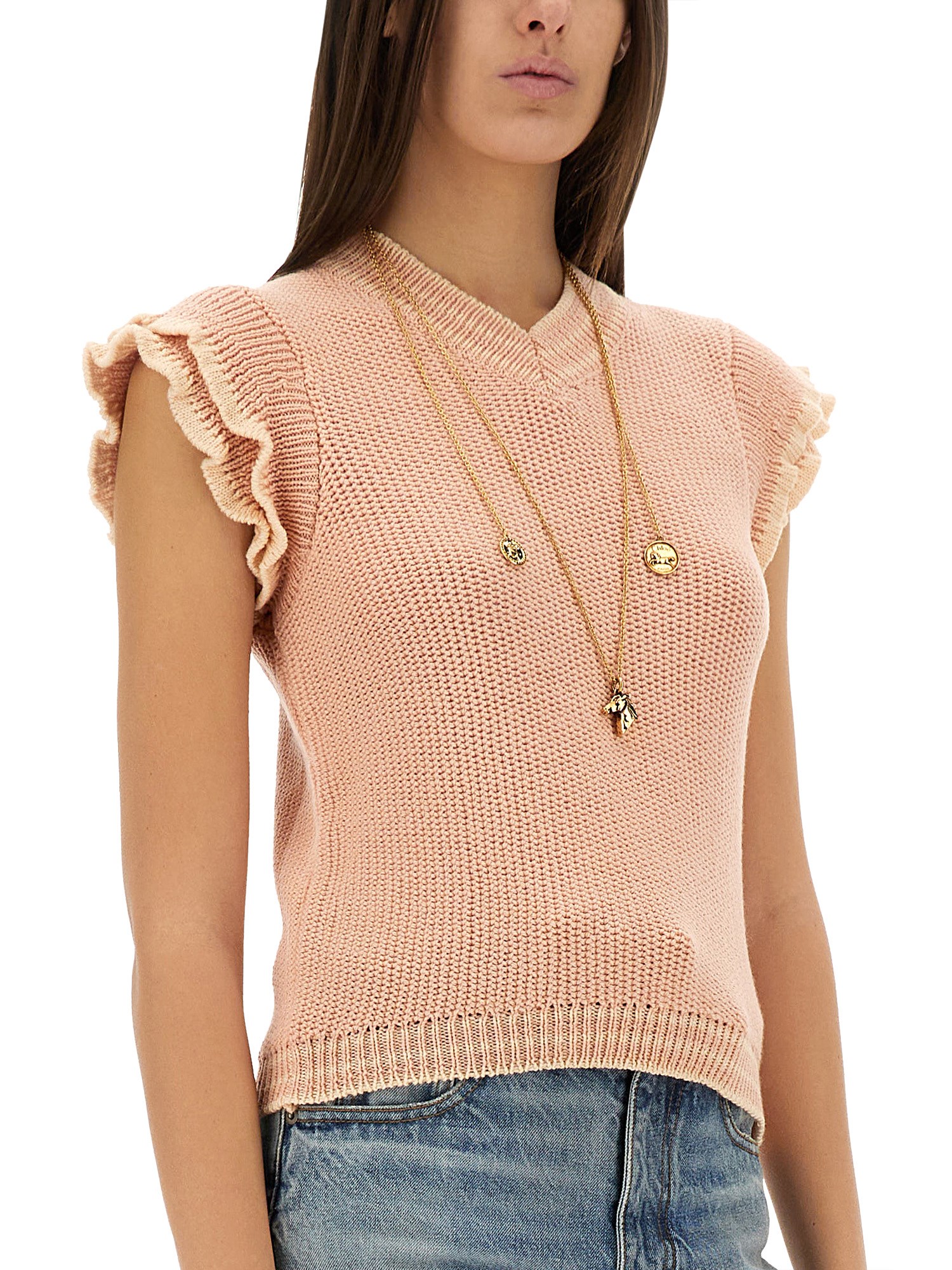 Elevate your wardrobe with the Short-Sleeved Wool Knit Top from Chloé, a perfect blend of luxury and comfort. Crafted from high-quality wool, this top offers a soft, breathable feel that keeps you cosy without sacrificing style. The short sleeves provide a modern silhouette, making it ideal for layering or wearing solo. Pair it with your favourite jeans or a chic skirt for a versatile look that transitions effortlessly from day to night. Embrace timeless elegance with this essential piece that embodies Chloé's commitment to quality and sophistication.