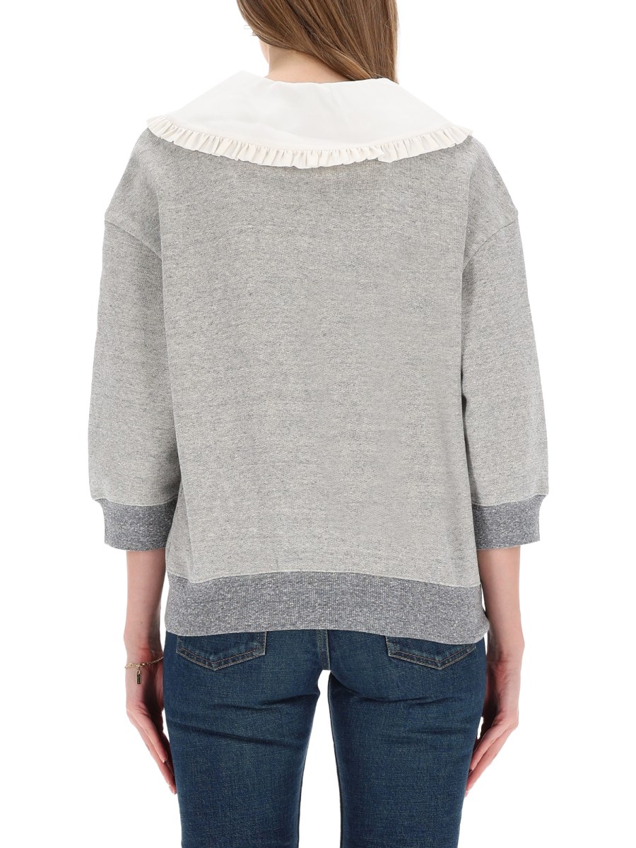 COTTON SWEATSHIRT WITH SILK RUFFLED COLLAR