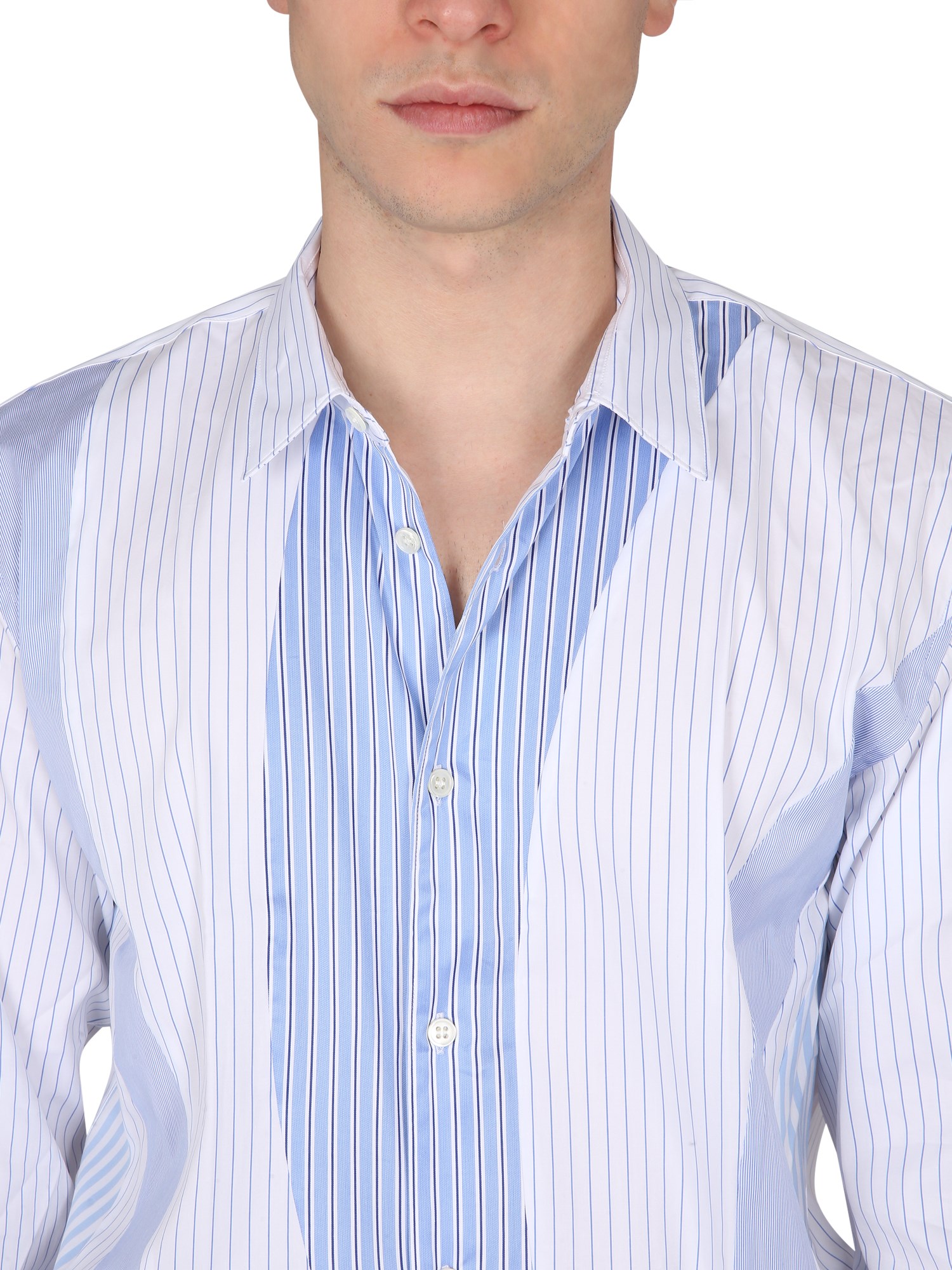 The cotton shirt from Comme Des Garcons Shirt is a stylish option for your everyday wear. The button-down shirt features a classic collar and is adorned with a striped mix design. The shirt is made of 100% cotton, which is breathable and soft. The stripes are a mix of dark and light colours, making the shirt a stylish addition to any wardrobe.
