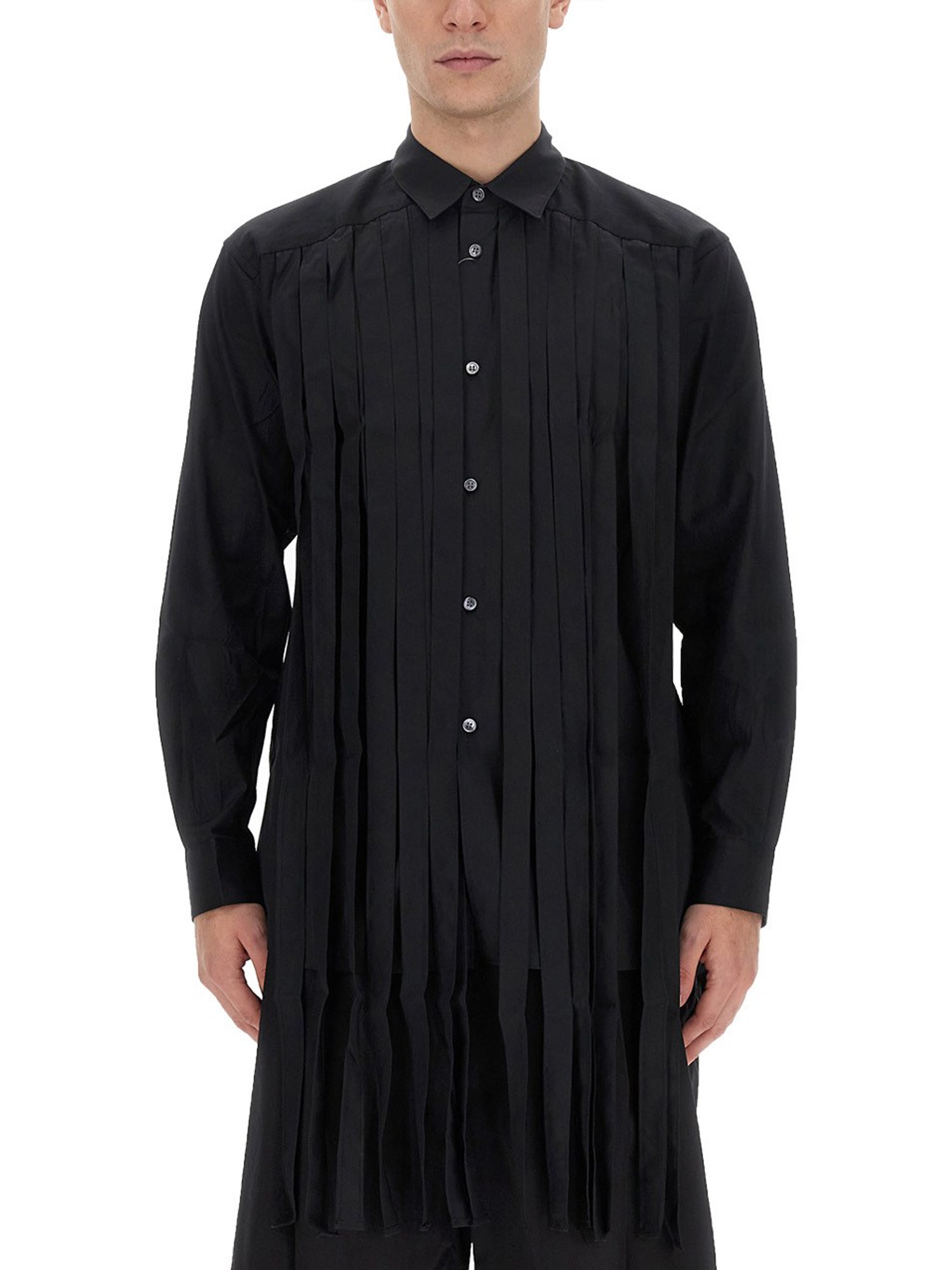 Experience a perfect blend of style and comfort with the Fringed Shirt from Comme Des Garcons Shirt. This fashionable piece features a collared neckline and long sleeves, offering a classic and sophisticated look. Designed with a front button closure, this shirt is not only easy to wear but also adds a touch of elegance to your outfit. With its fringed detailing, it adds a unique and contemporary twist, making it the perfect choice for any occasion.