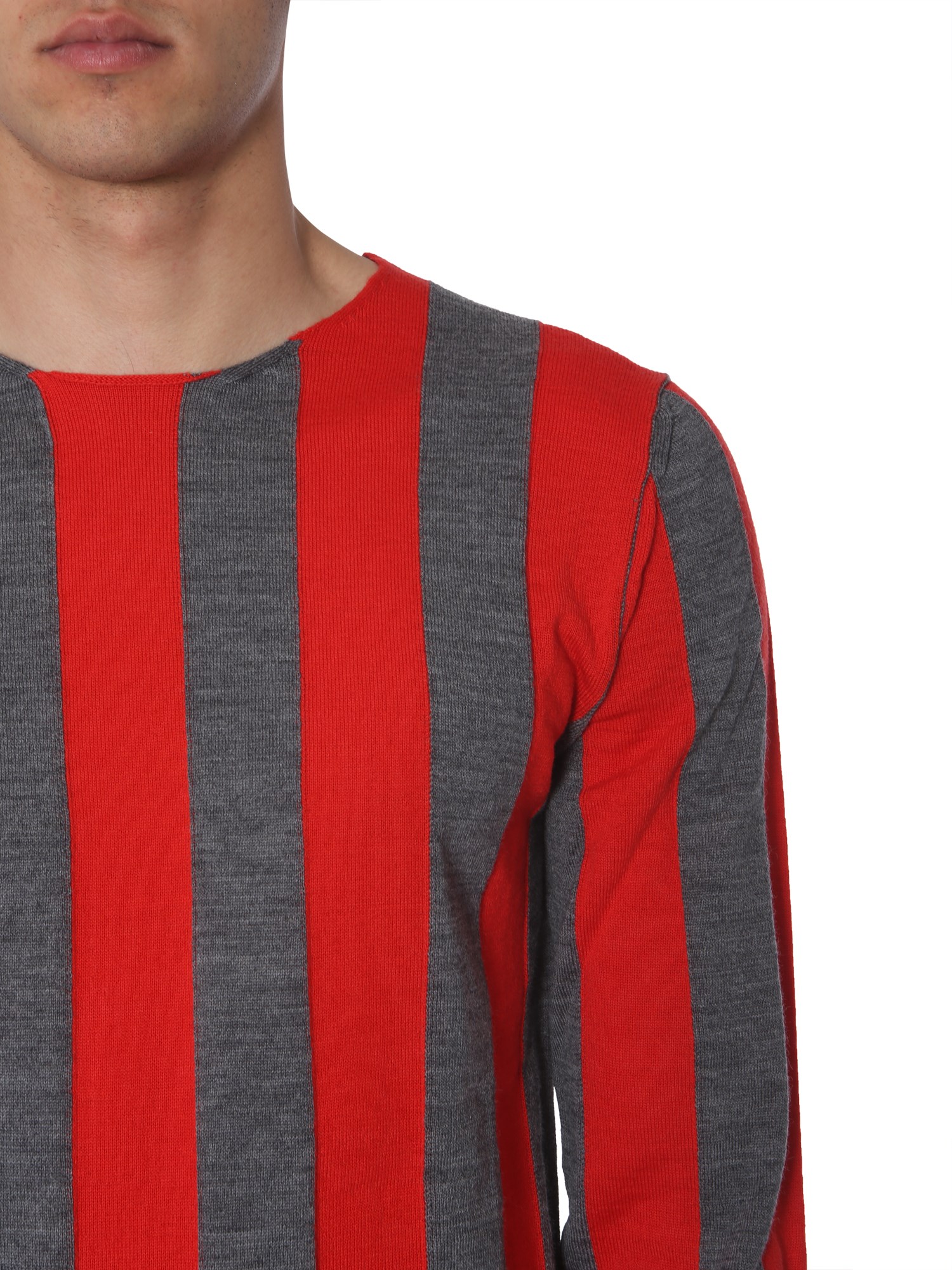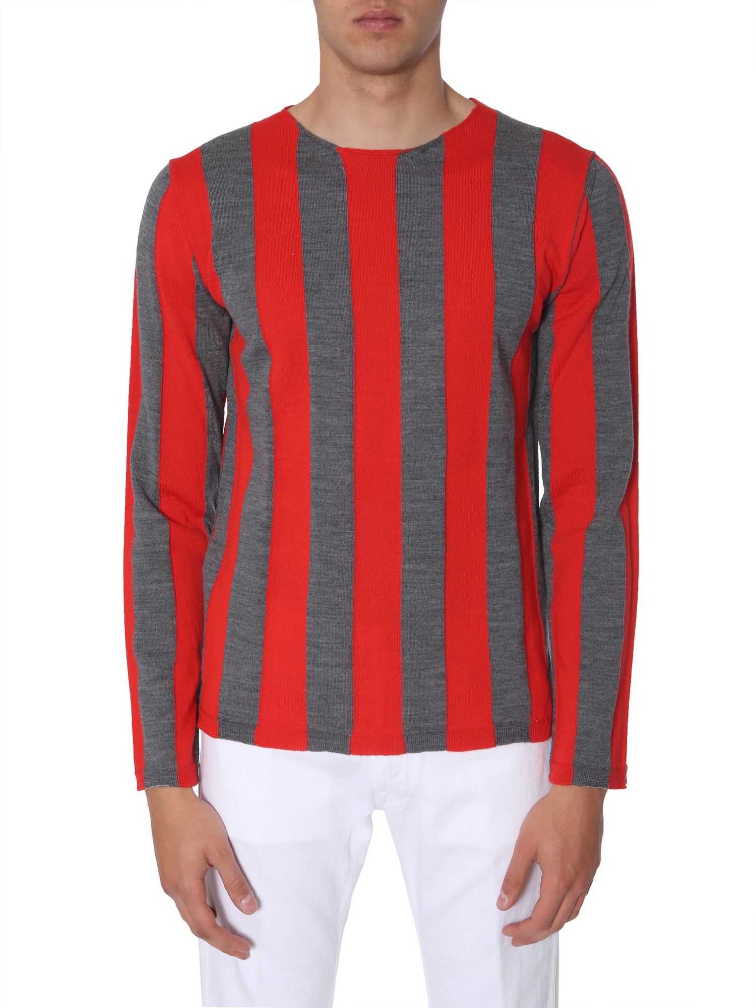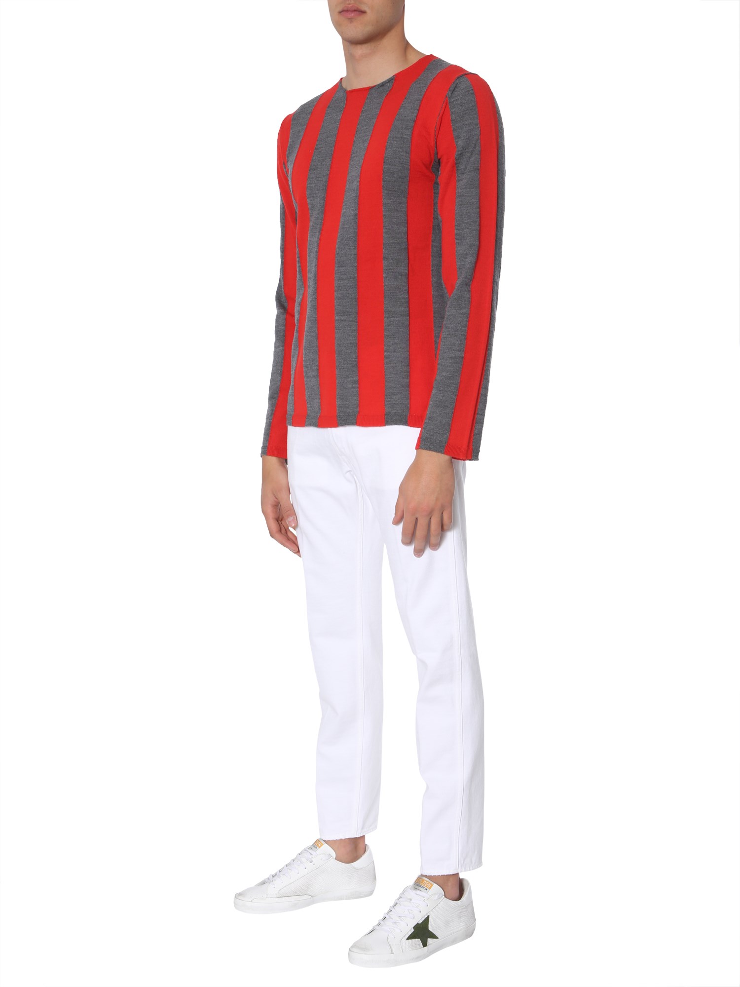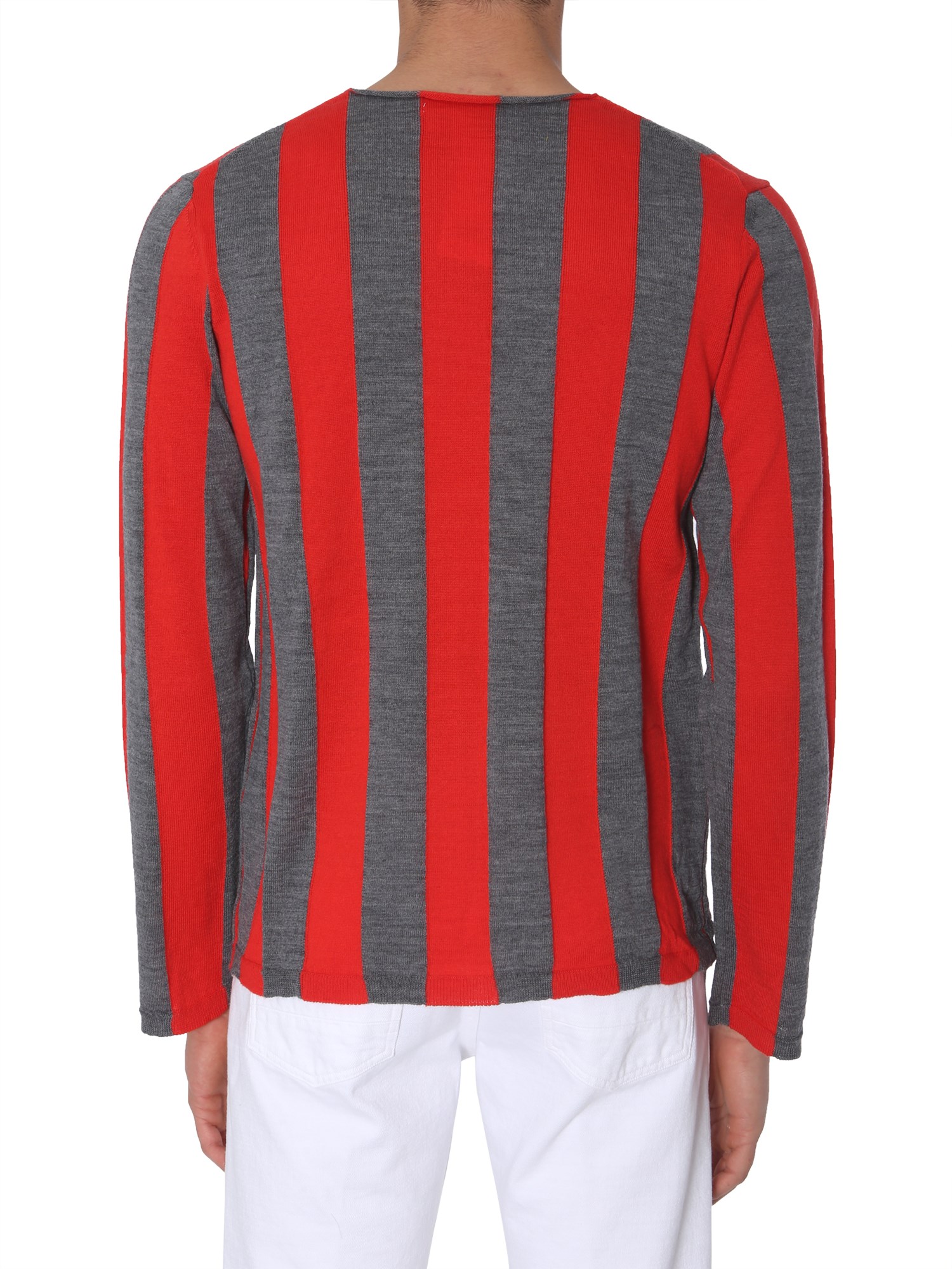 This winter, add this striped sweater from Comme Des Garcon Shirt to your wardrobe. The shirt is made from mixture of fabric including wool and acrylic, which provides a comfortable fit and feels soft on your skin. The sweater features vertical stripes with contrasting colours. It can be teamed with regular pants to have a complete look.