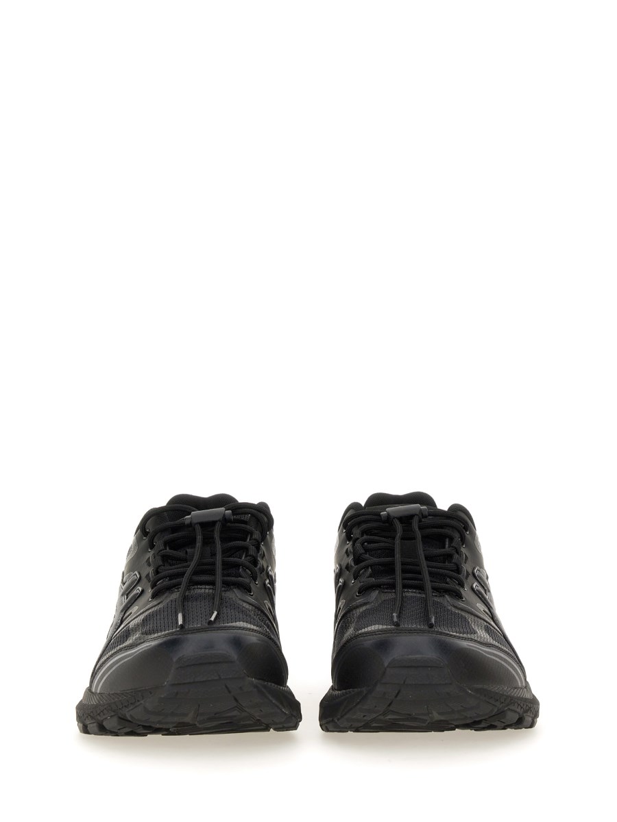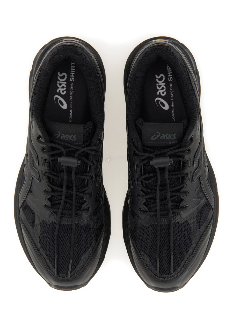 Elevate your street style with these sleek flat lace closure black trainer shoes from Comme Des Garcons Shirt. Crafted with high-quality materials, these trainers offer both comfort and style for everyday wear. The minimalist design is perfect for pairing with any casual outfit, making them a versatile addition to your wardrobe.