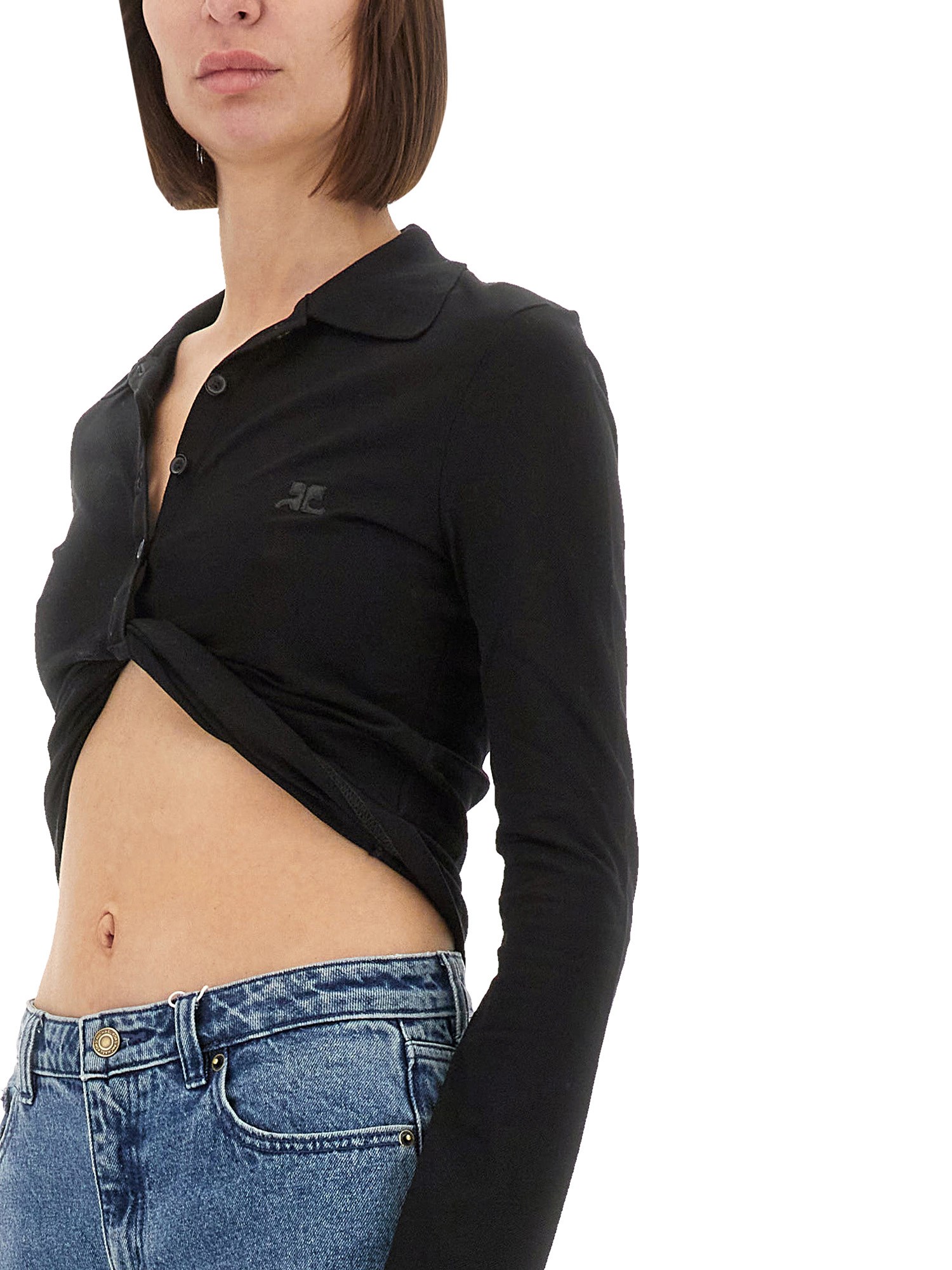 Experience a blend of sophistication and modern flair with the Cropped Polo Shirt "Twist" from Courrèges. This stylish piece features a contemporary cropped cut that flatters the silhouette, while the classic polo design ensures versatility for both casual and semi-formal occasions. Crafted from high-quality materials, it offers exceptional comfort and breathability, making it an ideal choice for warm days. Elevate your wardrobe with this chic staple that effortlessly combines elegance and trendiness, perfect for making a statement wherever you go.