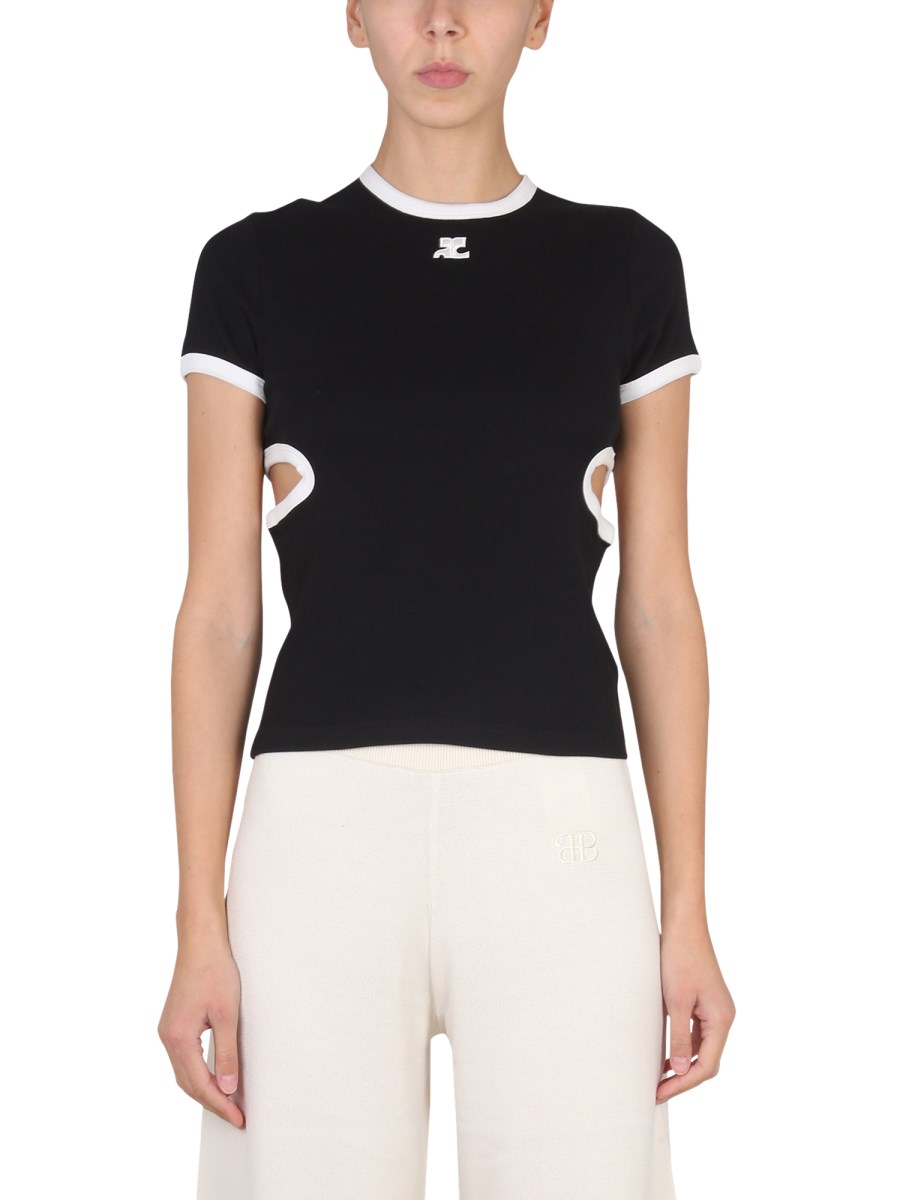 This T-shirt from Courreges is so soft and comfortable that you will never want to take it off. The Crew Neck Half Sleeve Side Cut-Out Detail T-shirt is a classic basic, made to be worn with everything. The light weight cotton is super soft and feels great on the skin.