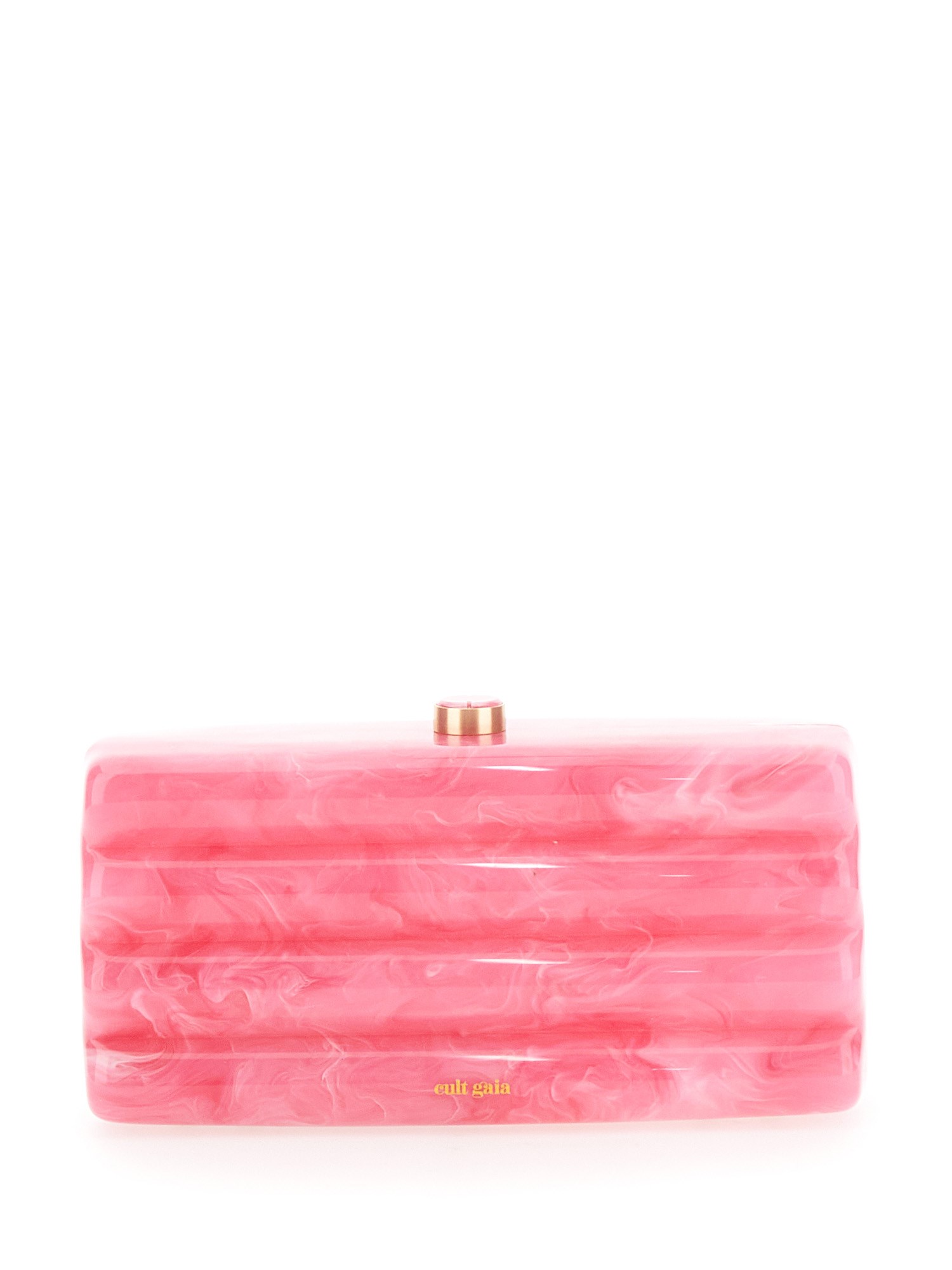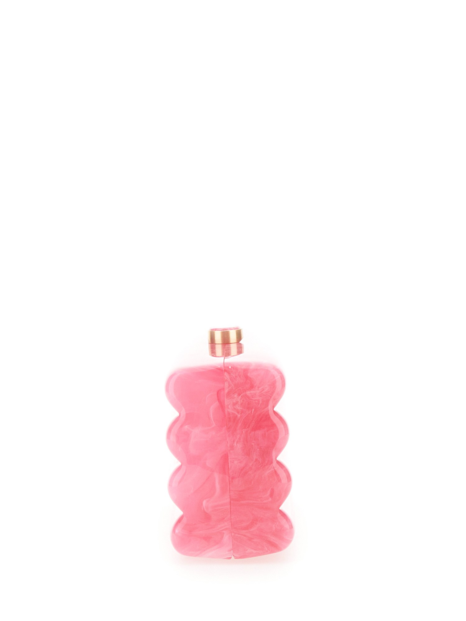 The Enid Clutch is a work of art. A handheld Dragonfruit-hued marbled acrylic clutch featuring rounded beveled lines designed in a luxurious material. The Enid is the perfect size for your essentials and an eye-catching accent to any outfit, while the hard case and latch keep your belongings safe.