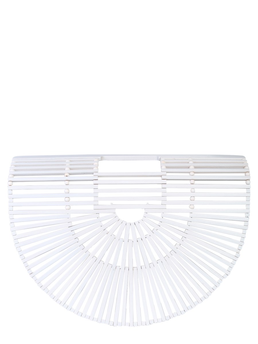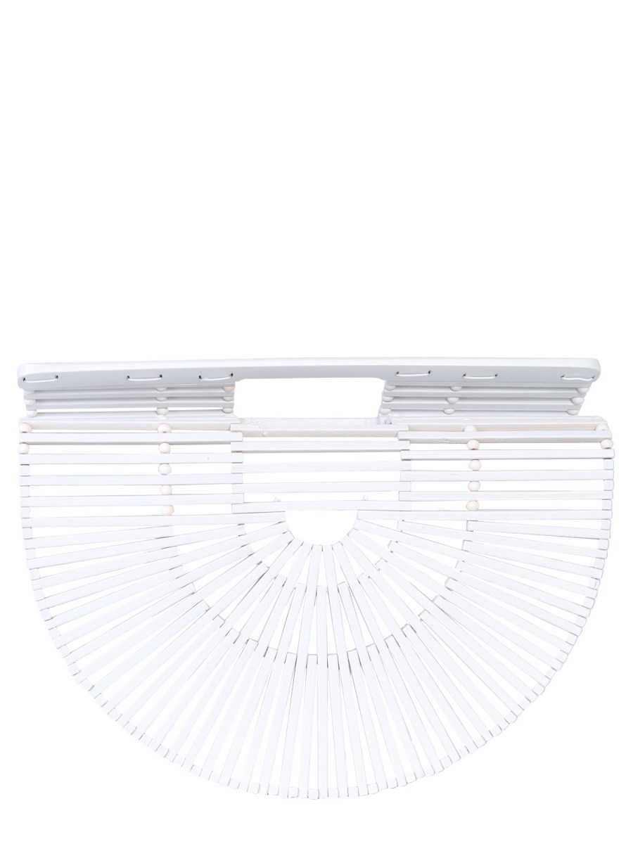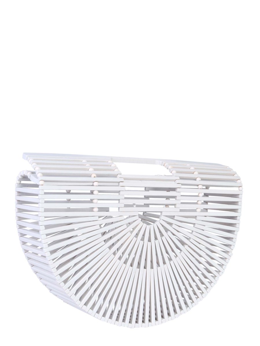 Bored with regular leather bags? Try this small Gaia's ark bag from Cult Gaia to update your collection. The bag is made from 100% bamboo to lend it a distinguished look. The bamboo sticks are woven together with utmost precision to make it durable. With the double flat handle, you can easily carry the bag to any casual event.