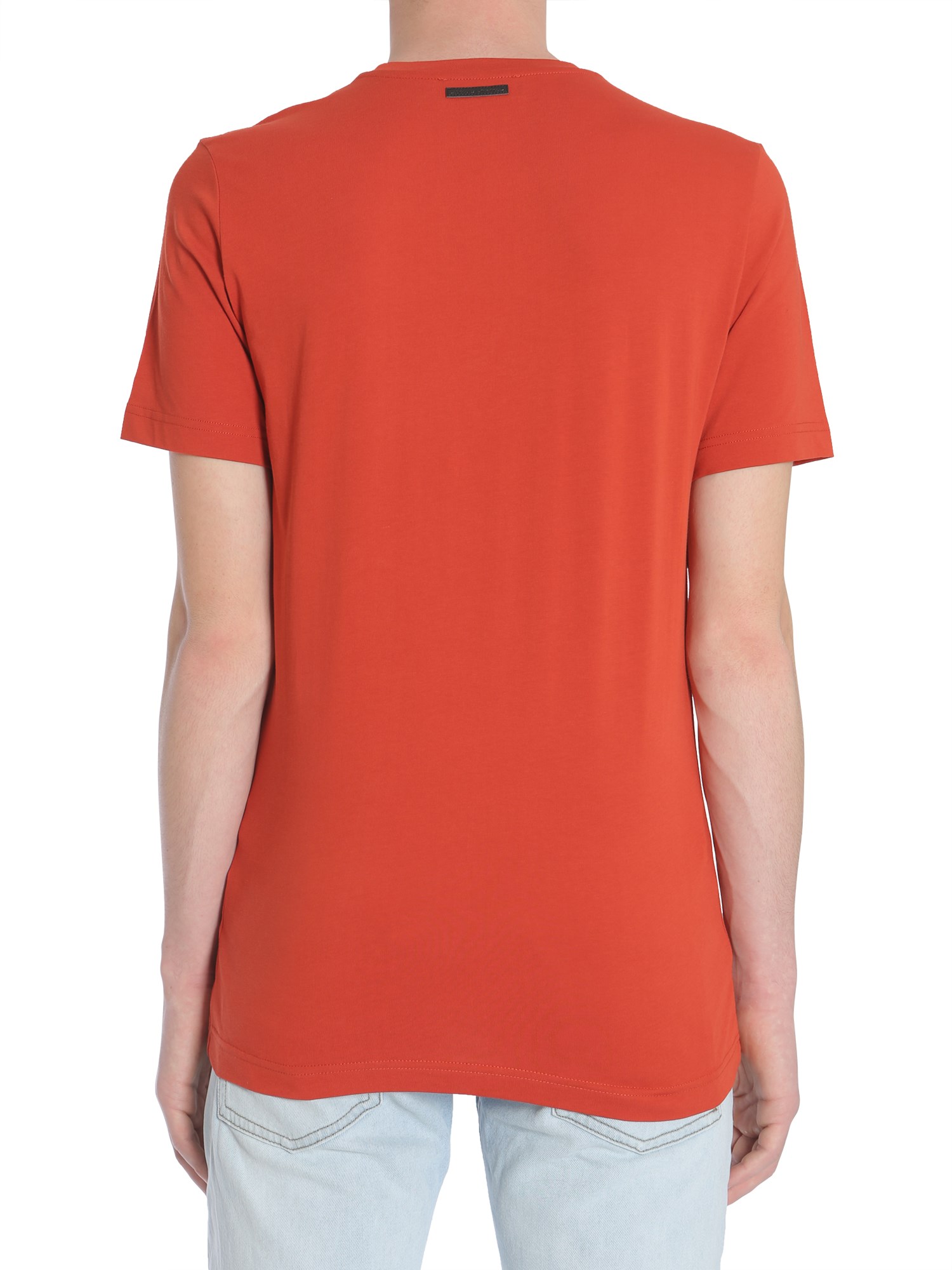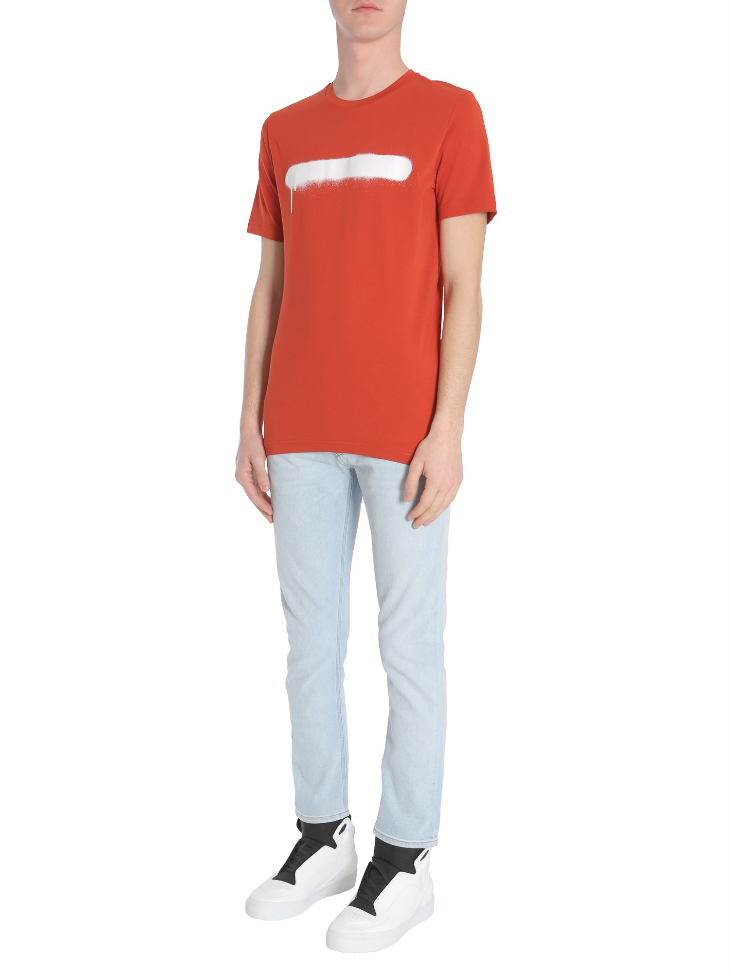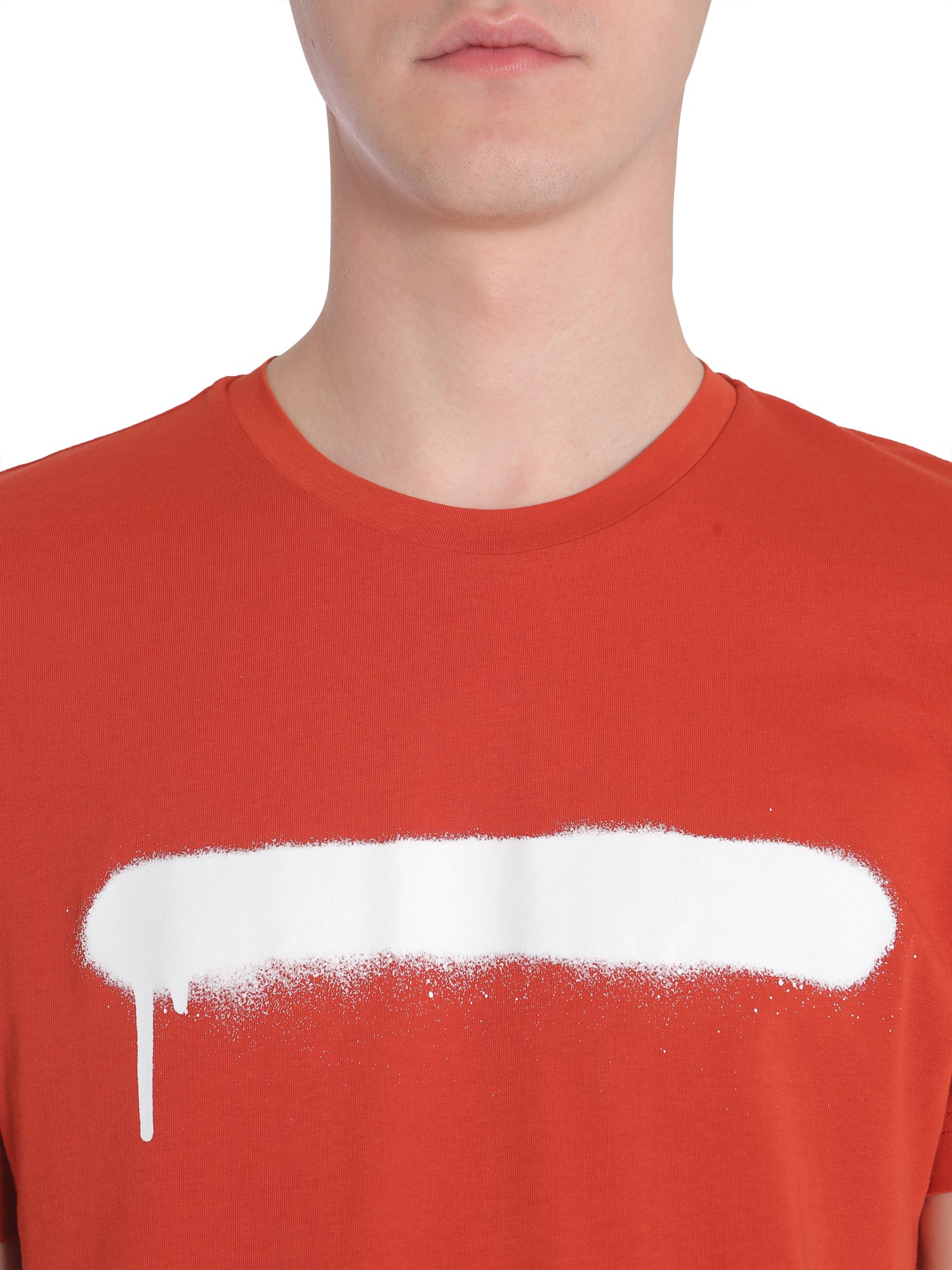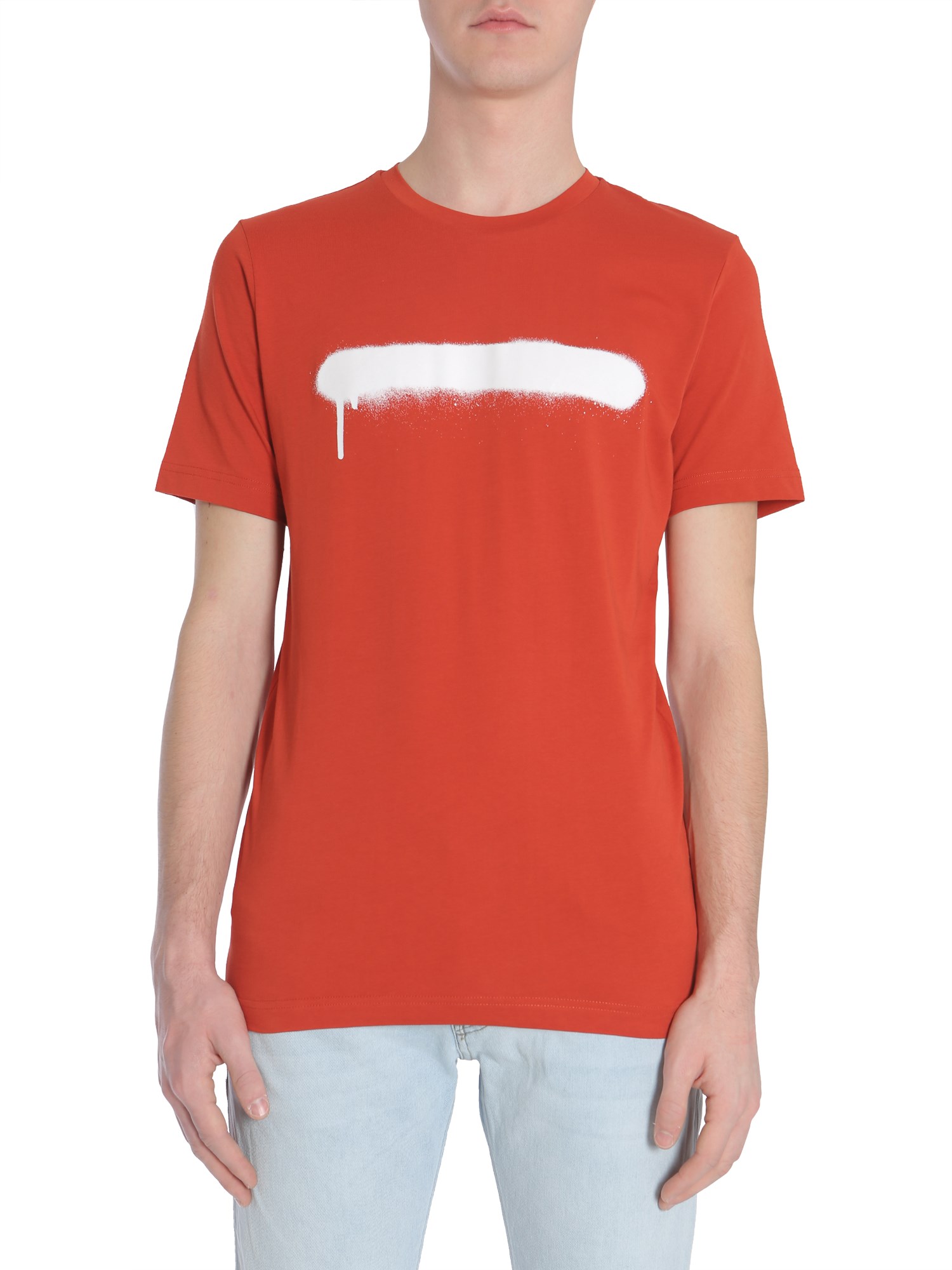 - RIBBED ROUND COLLAR- SHORT SLEEVE- FRONT TY-SPRAYLINE PRINT- 100% COTTON- MODEL IS WEARING SIZE M