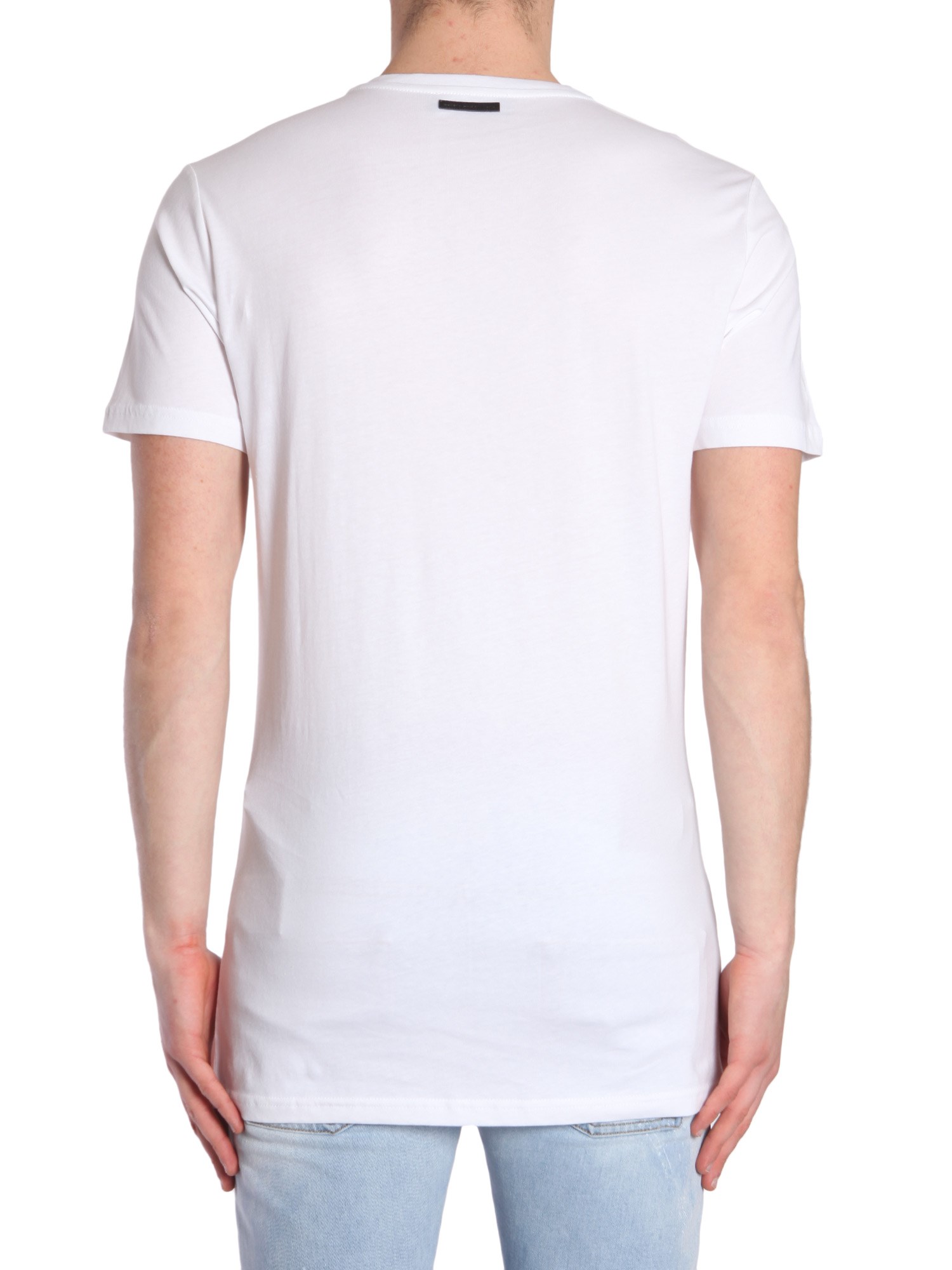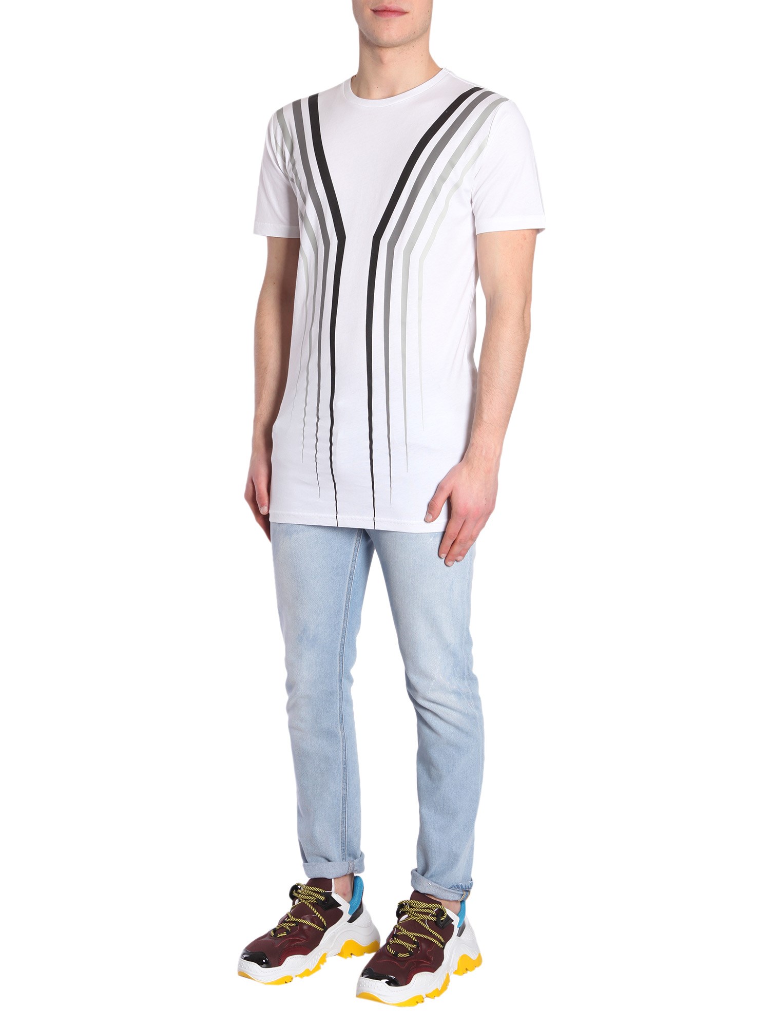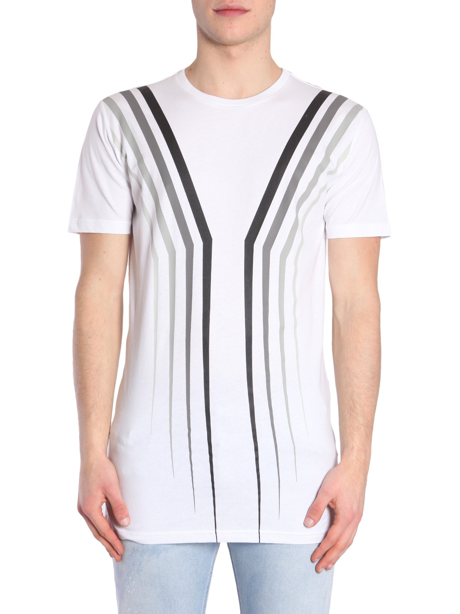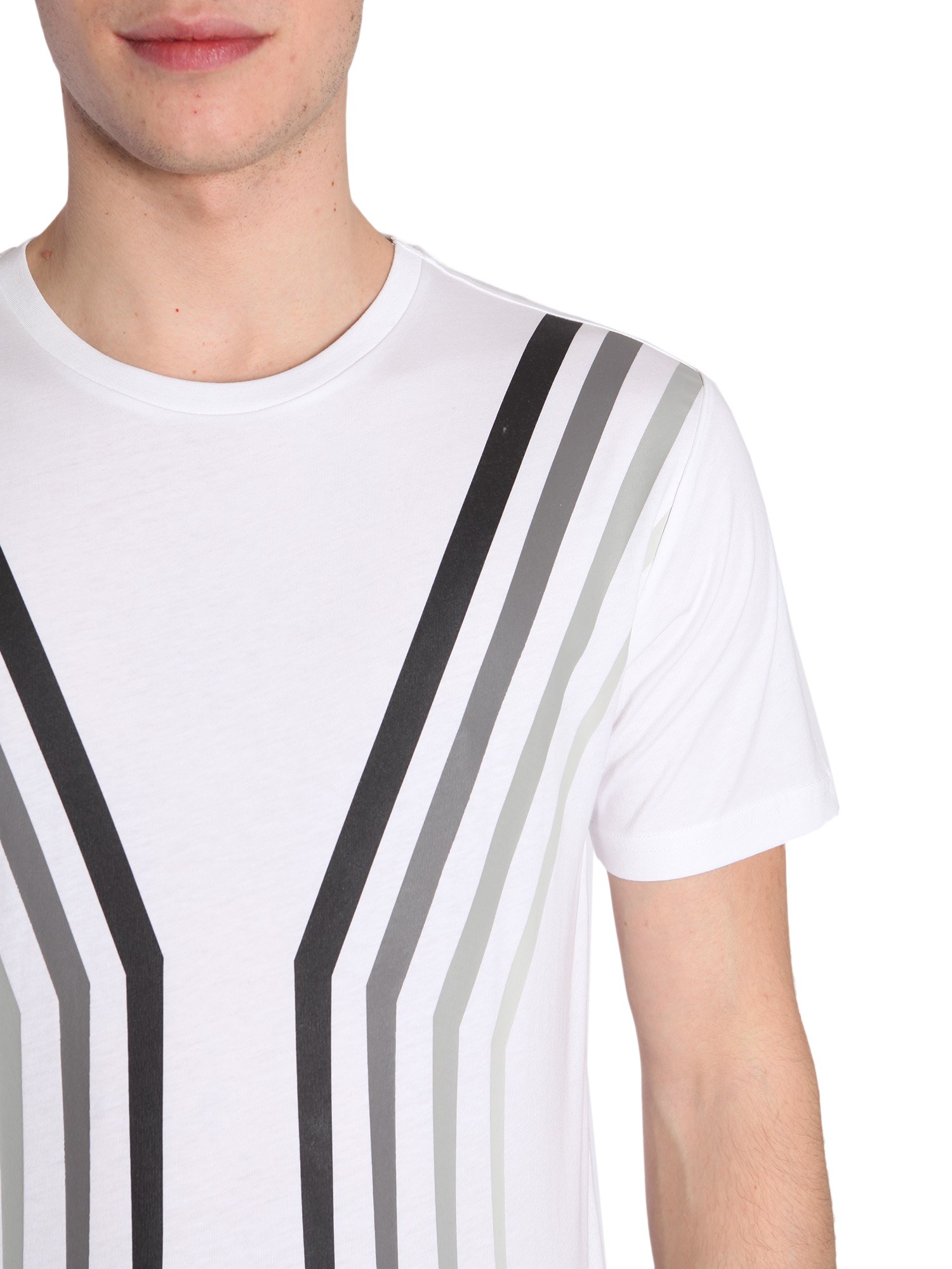 - RIBBED ROUND COLLAR- SHORT SLEEVE- FRONT PRINT- 100% COTTON- MODEL IS WEARING SIZE M