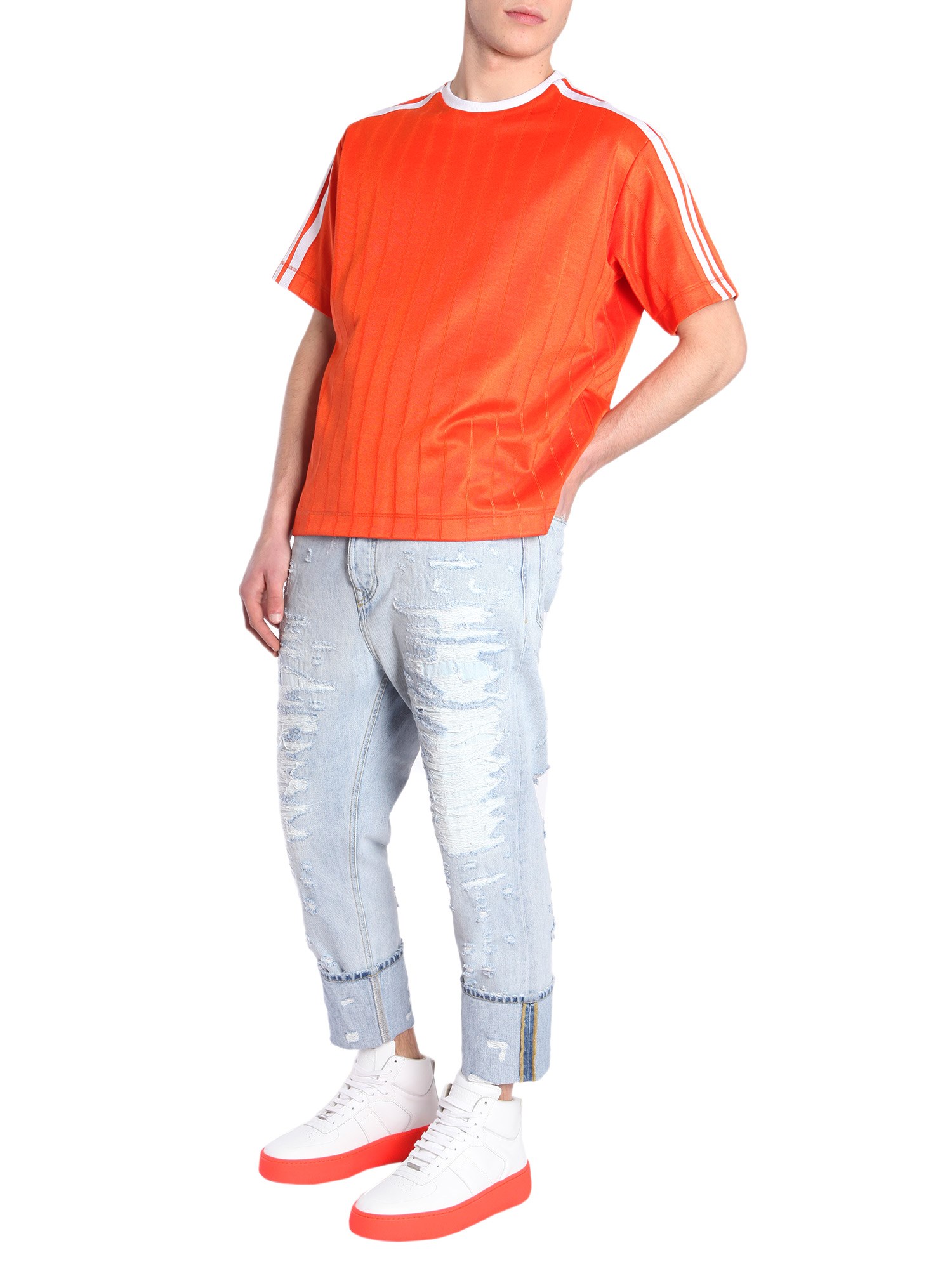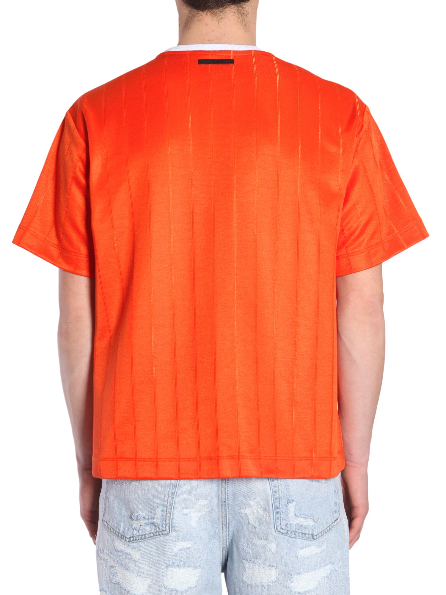 - RIBBED ROUND COLLAR- SHORT SLEEVE WITH CONTRAST BANDS- BOXY FIT- MADE IN ITALY- MODEL IS WEARING SIZE M