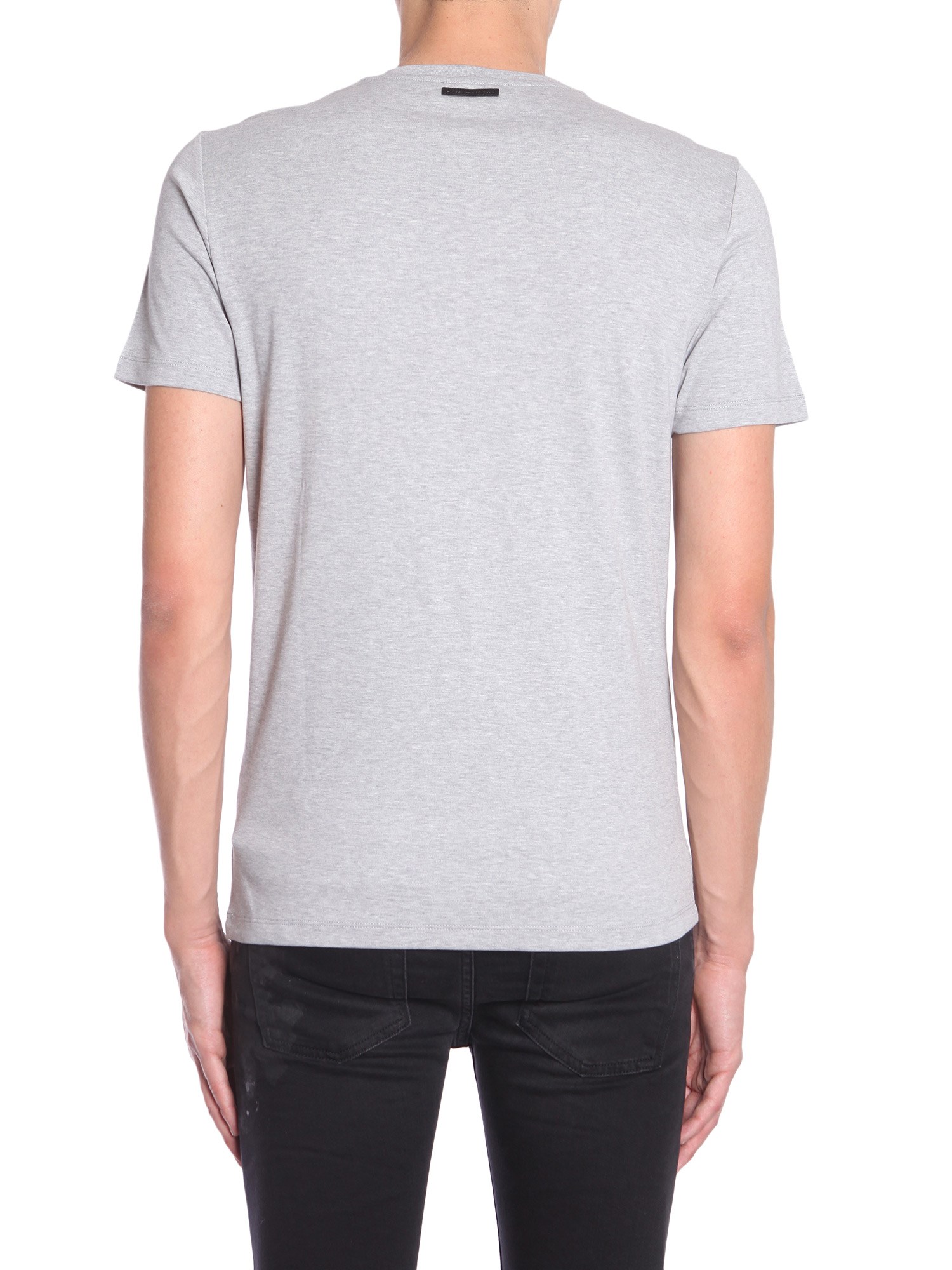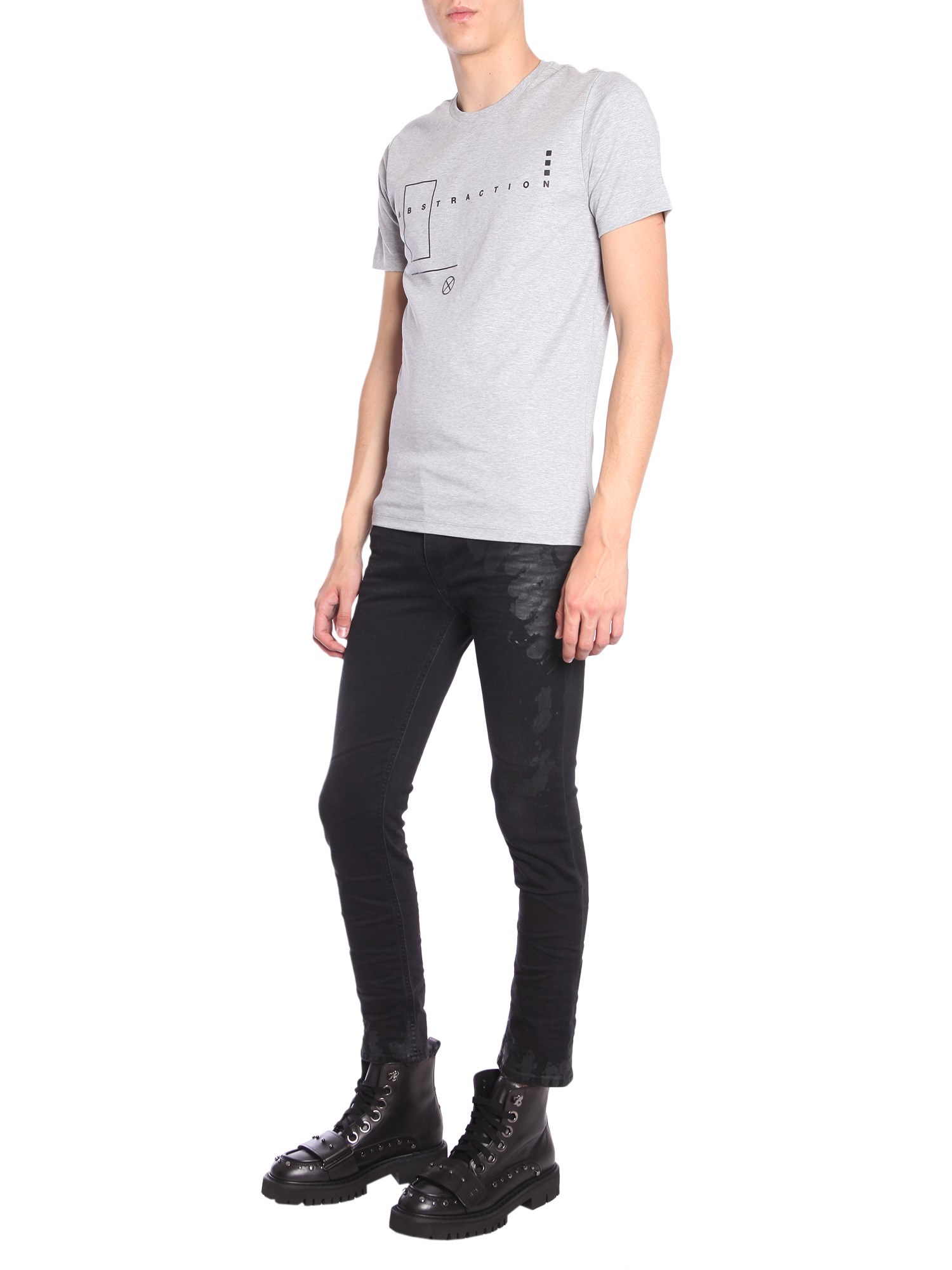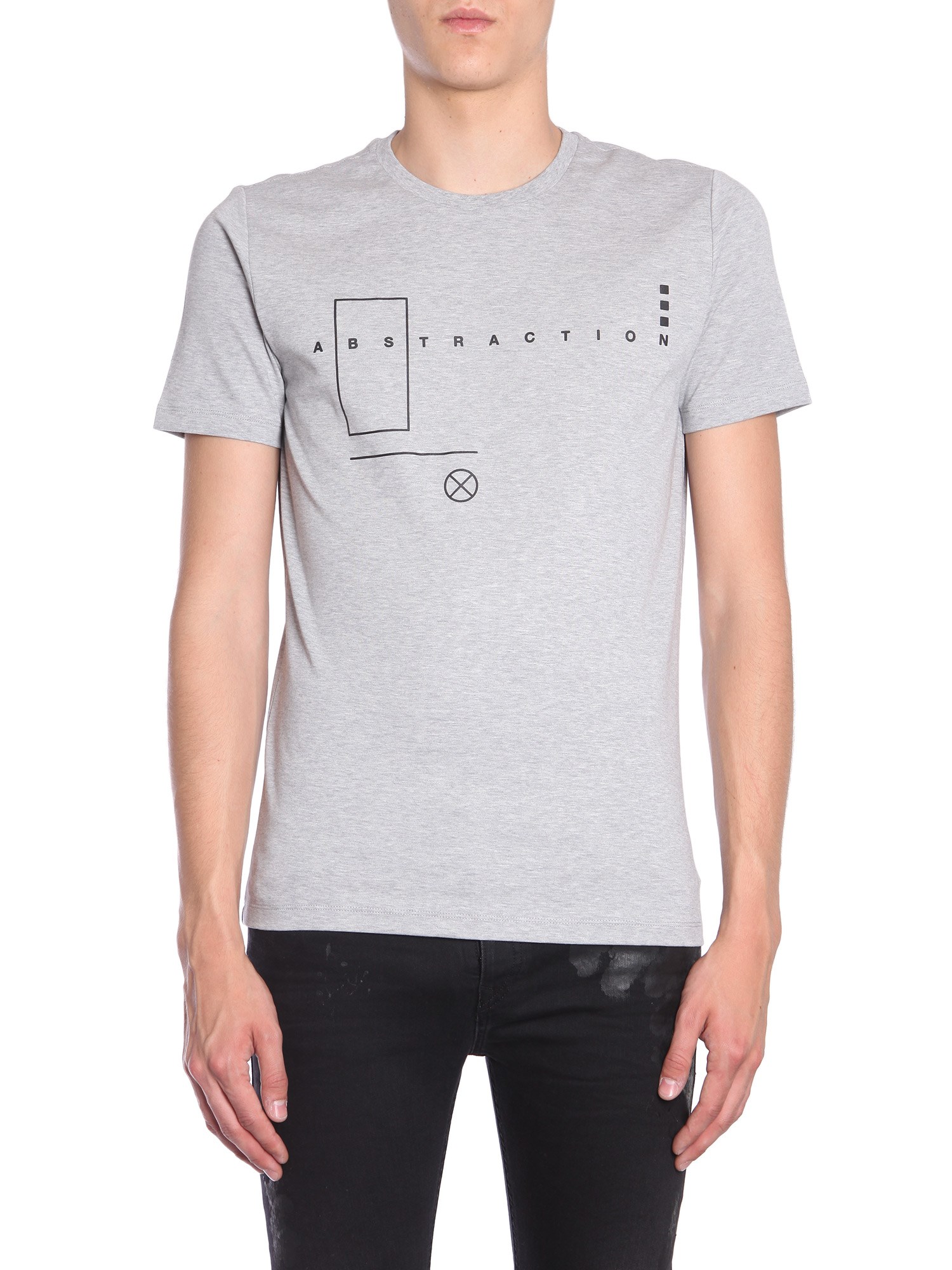 - ROUND COLLAR- SHORT SLEEVE- FRONT ABSTRACTION PRINT- 100% COTTON- MODEL IS WEARING SIZE M
