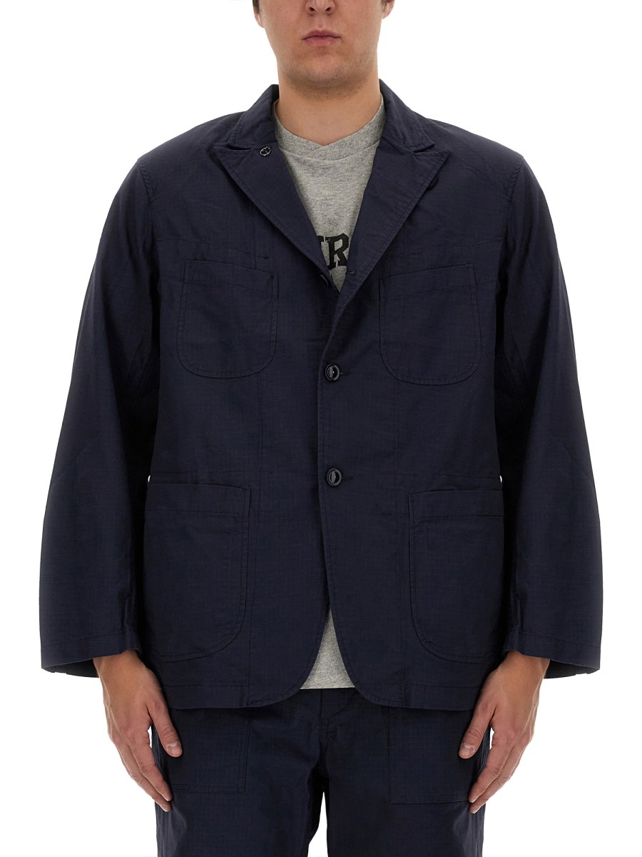 This is jacket from Engineered Garments is a must-have addition to your wardrobe. Made from high-quality cotton fabric, this jacket offers exceptional comfort and breathability. It feels incredibly soft against the skin, making it perfect for everyday wear. The vibrant blue colour makes a bold fashion statement and adds a touch of sophistication to any outfit.