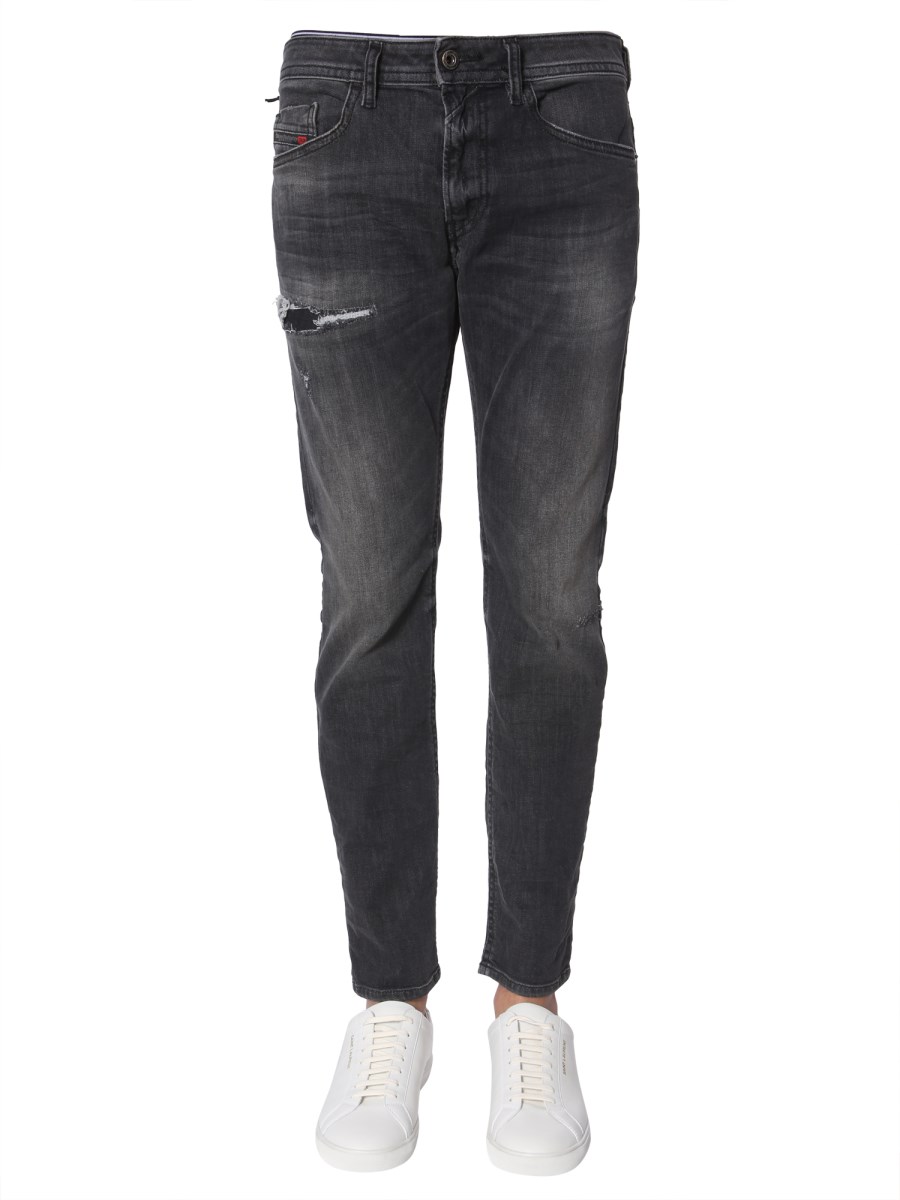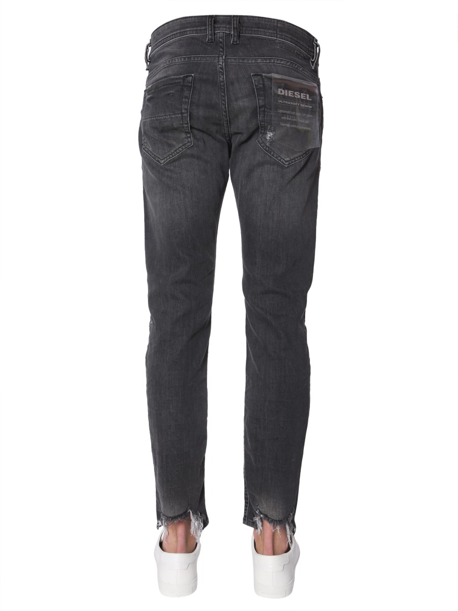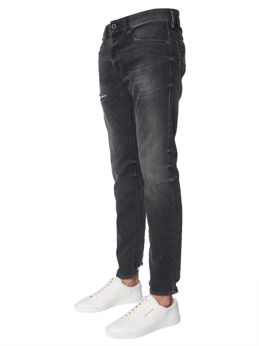 Look dashing yet cool by teaming up these jeans from Diesel with an oversize T-shirt. The blended cotton fabric makes you feel breezy and keeps you comfortable all day long. The skinny fit and five pockets make it stand out from the ordinary casual wear. The hidden zip and button closure ensure a secure fit.