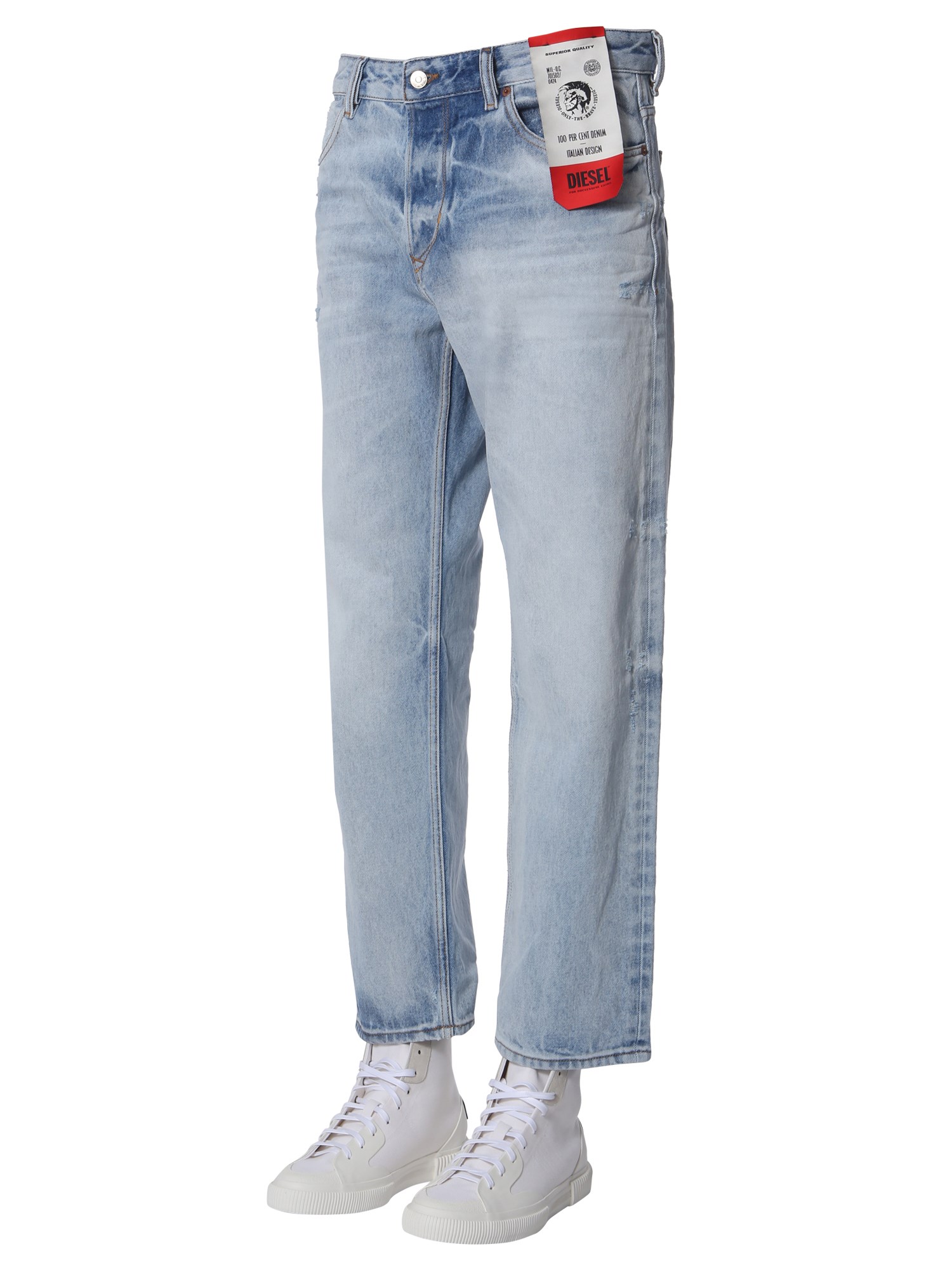 From casual dates to crazy night outs, these "d-kodeck" jeans from Diesel are a must-add to your casual wardrobe. These denim jeans have a regular fit design that keeps you comfortable all day long. Made of fine quality cotton, these jeans are breathable and lightweight. Rock a stylish day out by pairing them with a basic tee and shoes.