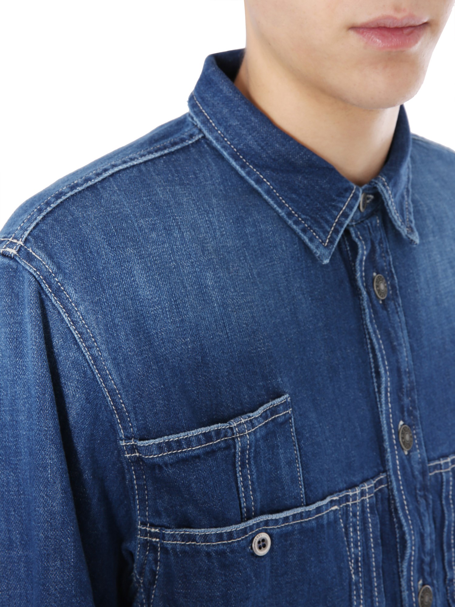 Denims never go out of trend. So investing on this "d-flox" shirt from Diesel would be a wise decision. Cut to an oversize fit, the shirt is comfy and does not stick to your body. With a classic collar and button down closure, it has metallic buttons at the front. Two chest pockets with button keep your knick knacks safe.