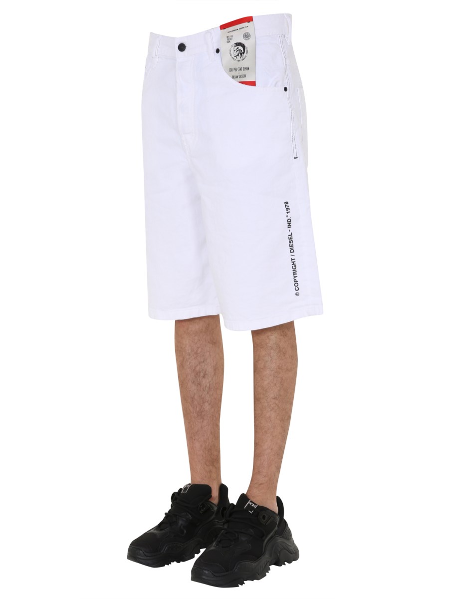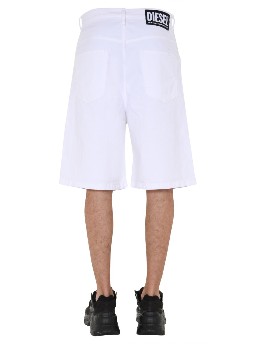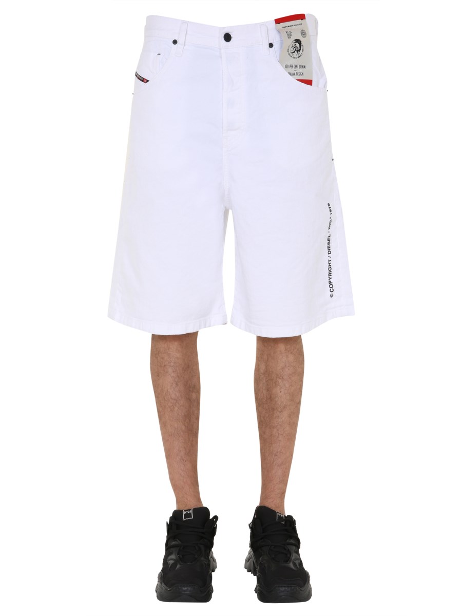 Feel super comfortable as you wear the "D-Bron" Cotton Denim Worn-Out Effect Bermuda. These Bermuda are made with a blend of cotton and elastane. They have a front button closure along with a five-pocket design. The ripped detailing with textured effect enhances their visual appeal. For added softness, this Bermuda is crafted using stone wash processing.