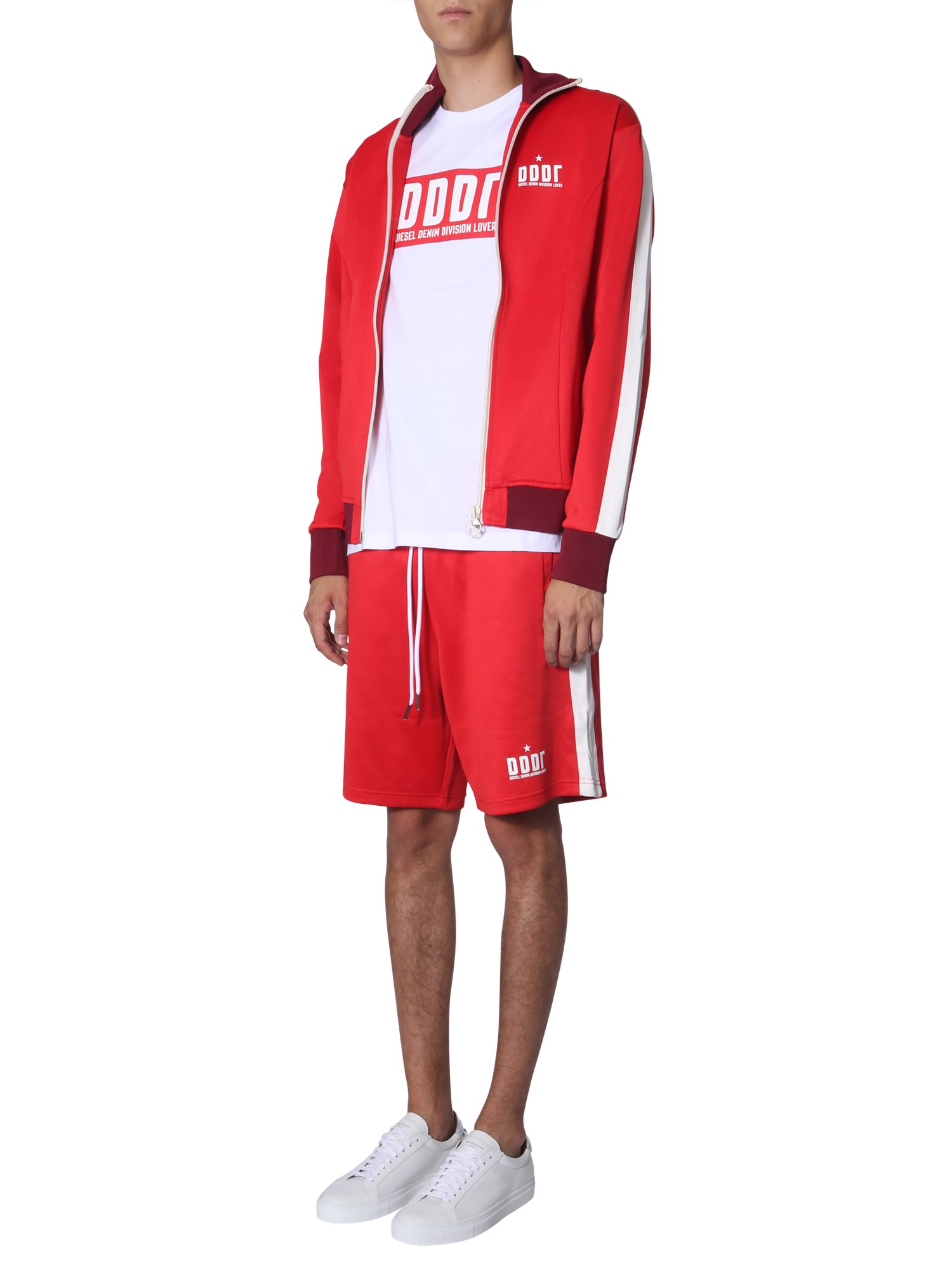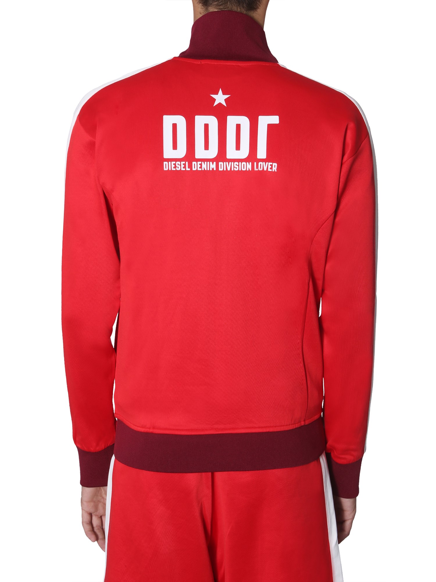 Add some colours to your wardrobe with this vibrant "s-elmar" sweatshirt from Diesel. The zipper is designed with contrasting neck, cuffs and hemline that match well with its vibrant colour scheme. Made of a blend of cotton and polyamide, the jacket is soft, lightweight and breathable. You can style it with a white tee for a cool ensemble.