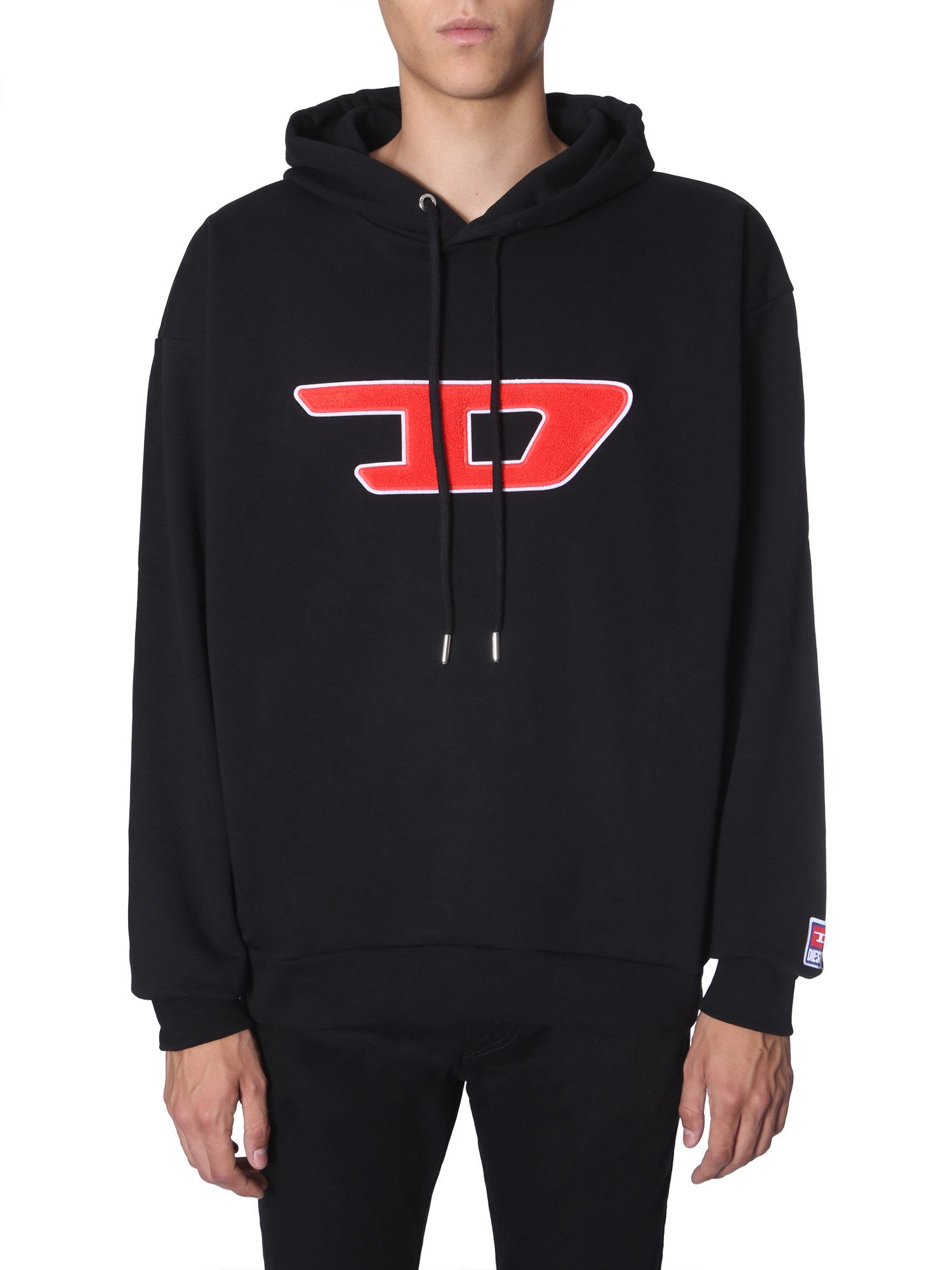 Step out in style with this trendy "s-division-d" sweatshirt from Diesel. It is made of fine quality cotton fabric that feels soft on the skin ensures breathability. Its design is finished with an embroidered front that gives it a unique appeal and a perfect addition to your wardrobe. Match it with a pair of black jeans and shoes for a complete look.