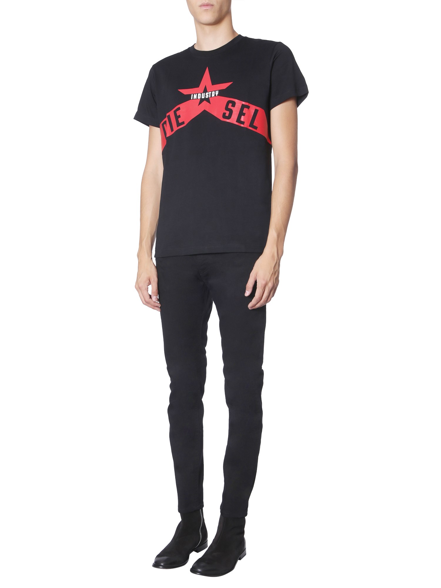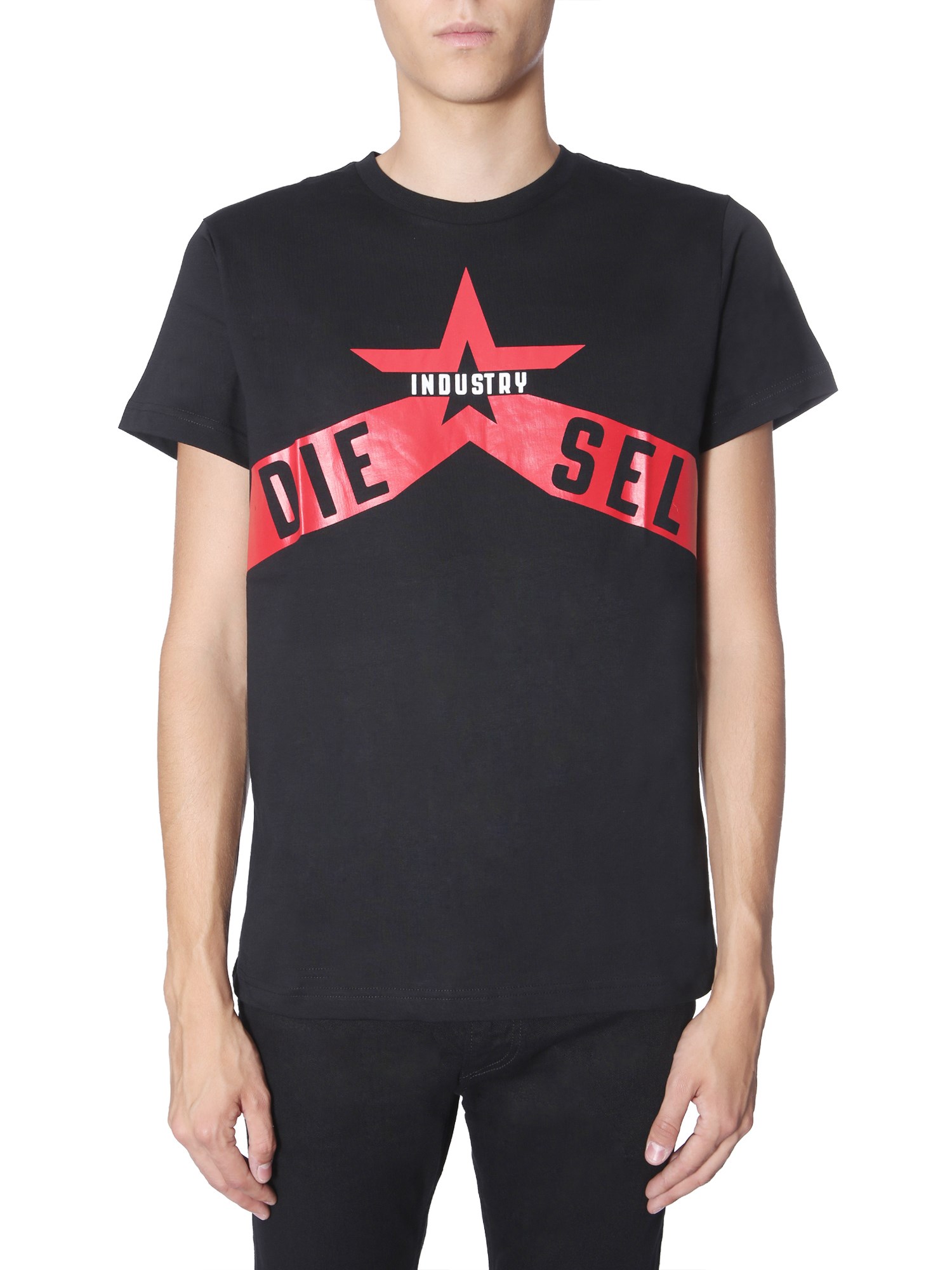 This summer, add this cool and trendy "t-diego-a7" T-shirt from Diesel to your wardrobe. Owing to the fine quality cotton fabric, the garment is highly absorbent and breathable. However, its dark colour scheme lets you layer it under a denim jacket as well. You can pair it with a pair of black jeans and boots for an unmatched look.