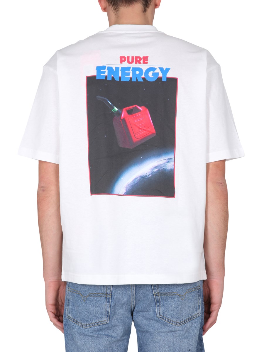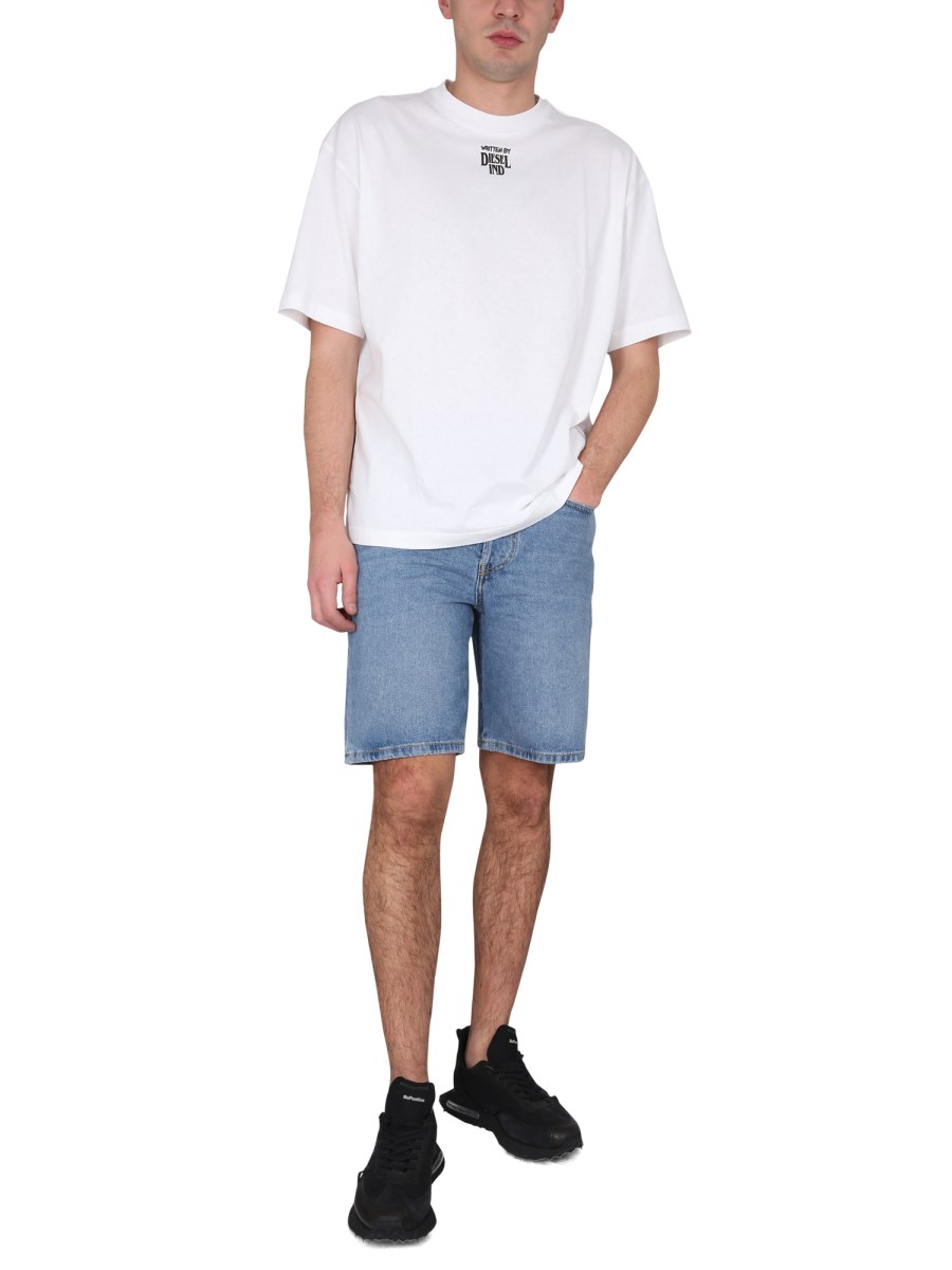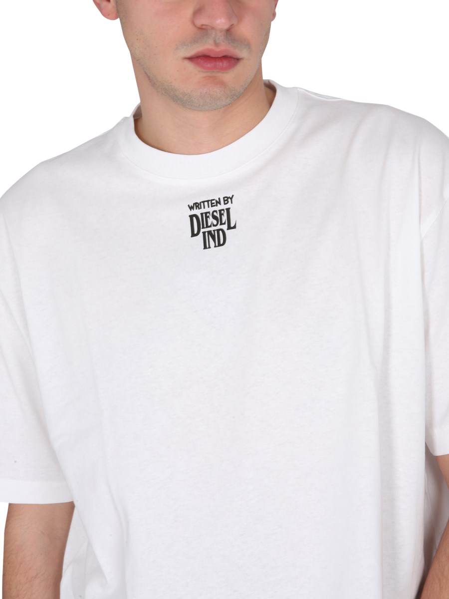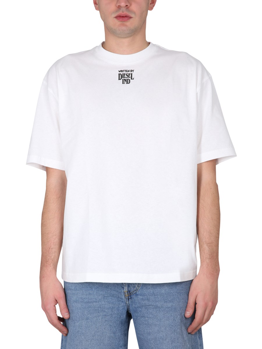 This T-shirt from Diesel has a logo print on the front that's oversize. It's a cotton jersey material that feels soft and light. A super comfortable and trendy shirt for your favourite sports fan. This shirt has a large front logo print oversize fit cotton jersey T-shirt. It has short sleeves, a crew neck, and ribbed neckband.