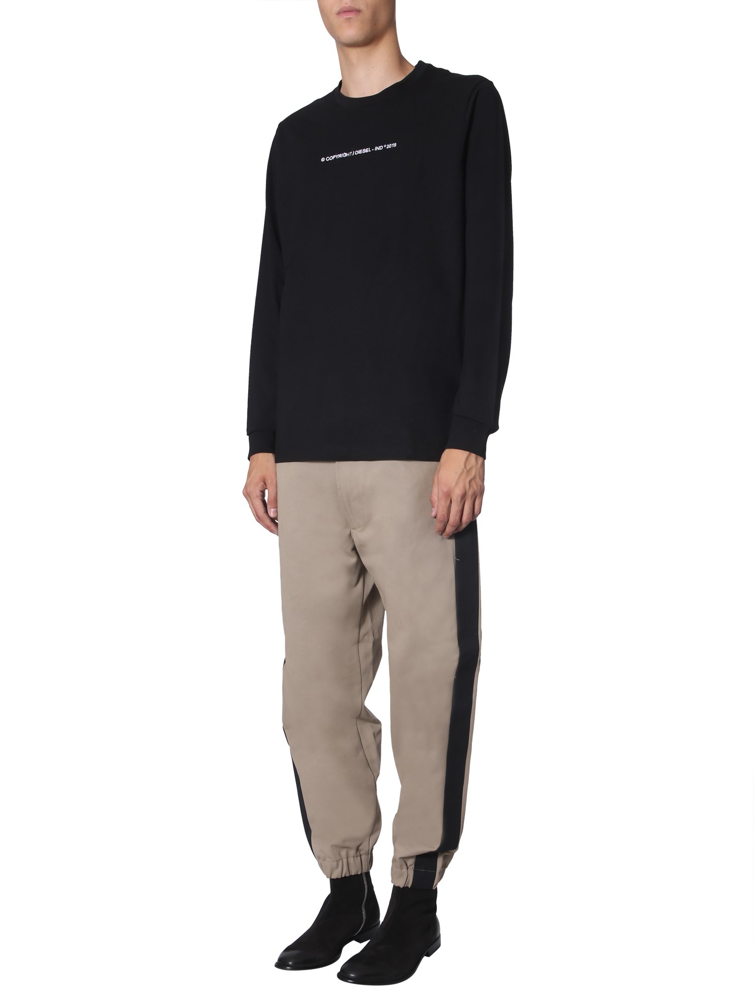 Give your wardrobe a fancy update with these "p-lev" pants from Diesel. The pants are made from polyester and cotton that is soft and gentle when touched. They have a front zip and button closure and three pockets for carrying phone and keys. You can match it with a black sweatshirt and sports shoes for a complete look.