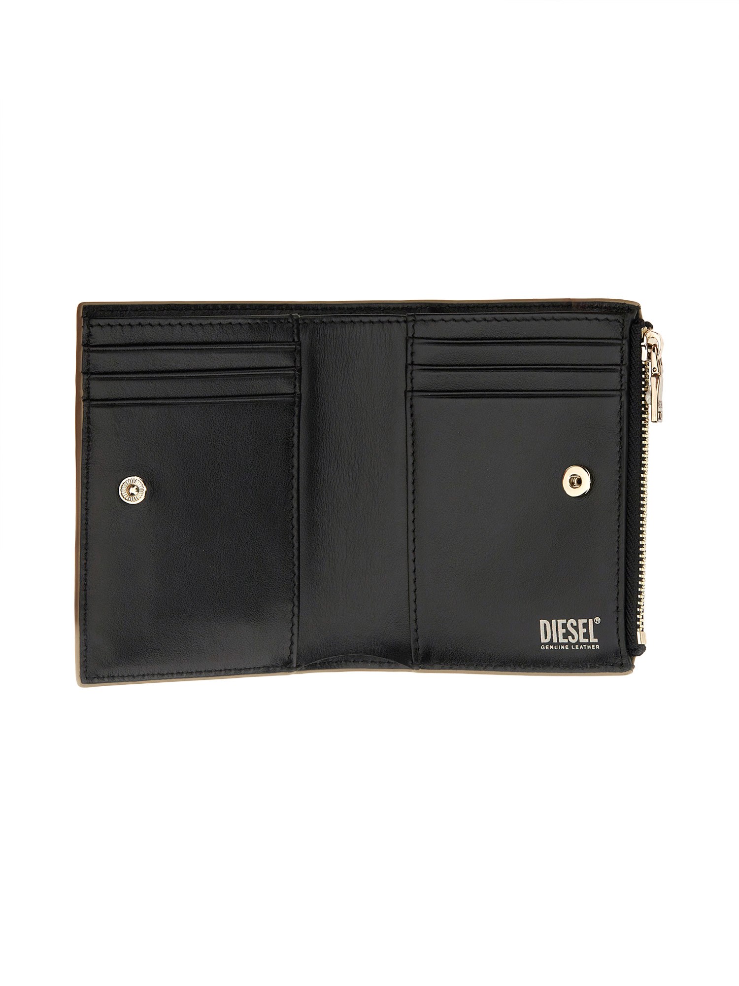 The Diesel Slim Wallet is a slim and fashionable option for your everyday needs. There are two flat pockets and six card slots in this genuine leather wallet. If you prefer to take along some cash and cards, this leather wallet is perfect for you. This chic wallet is ideal for the professional woman.