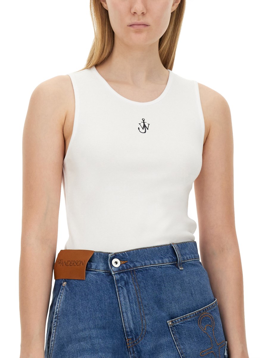 The JW Anderson logo-embroidered top exemplifies contemporary fashion with its minimalist design and premium craftsmanship. This versatile piece features a soft fabric that ensures comfort while showcasing the brand's distinctive logo, adding a touch of sophistication. Ideal for both casual and semi-formal occasions, it can be effortlessly styled with various bottoms, making it a staple in any modern wardrobe.