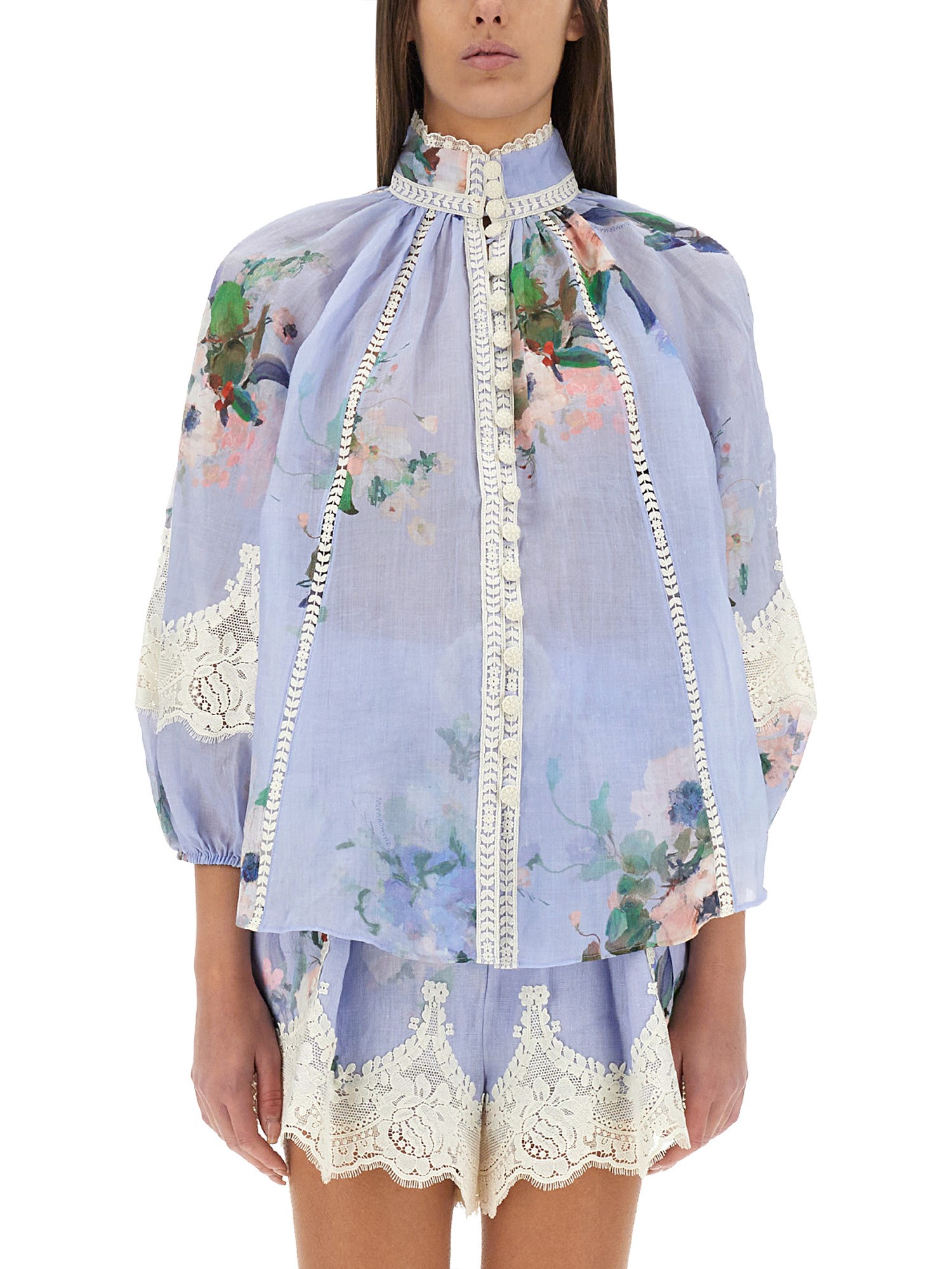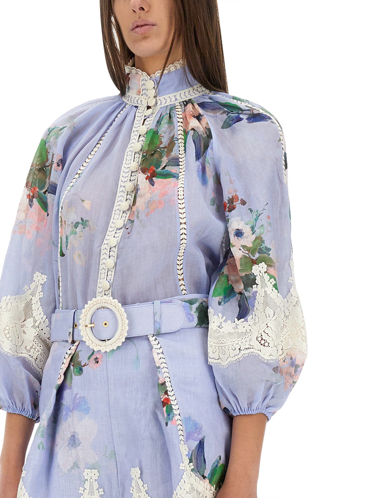 LINEN "EVERLEY" BLOUSE WITH LACE TRIM