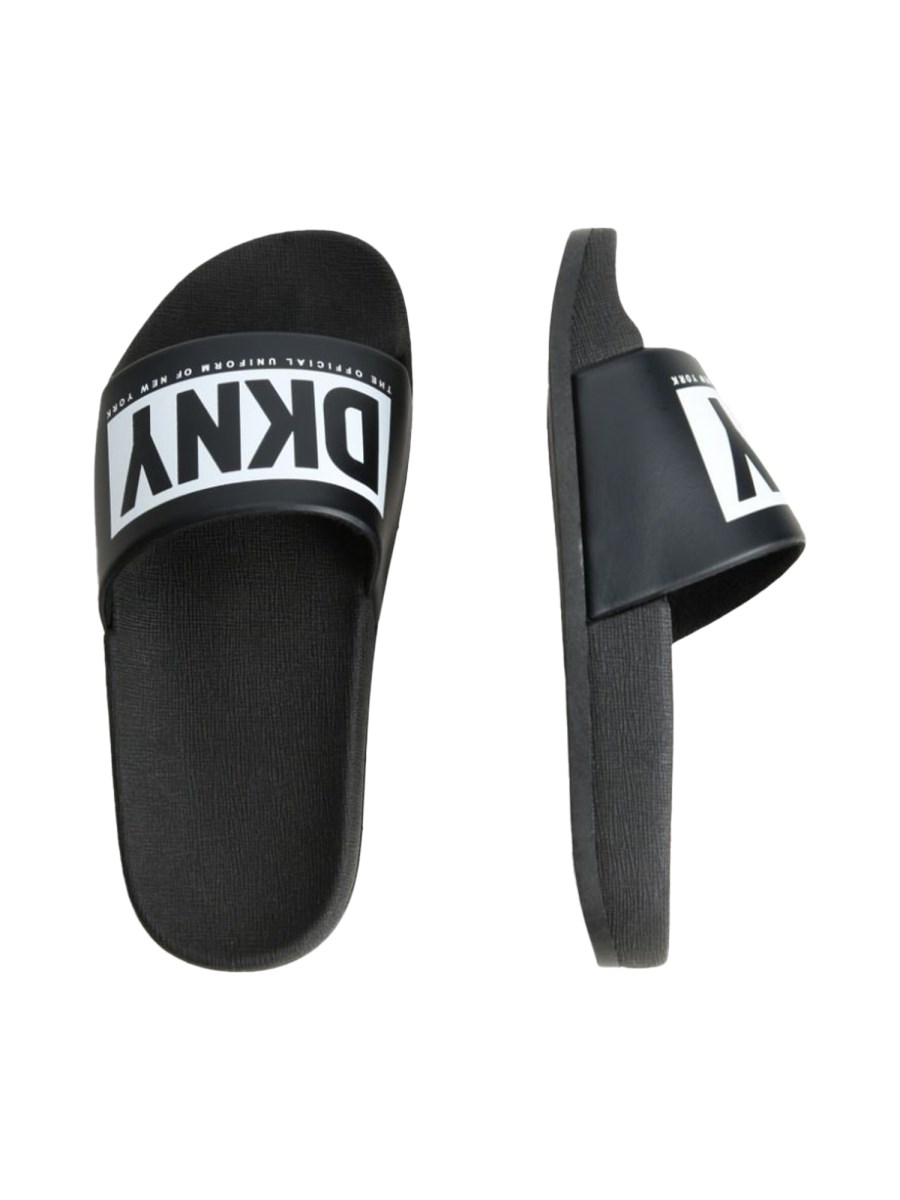 These slides from DKNY are designed to offer the utmost comfort, allowing you to effortlessly move from one activity to another. Made from high-quality materials, these slides provide durability and long-lasting wear. The front logo detail adds a touch of sophistication and character to your outfit. The black colourway gives these slides a versatile and timeless appeal, effortlessly complementing any ensemble.