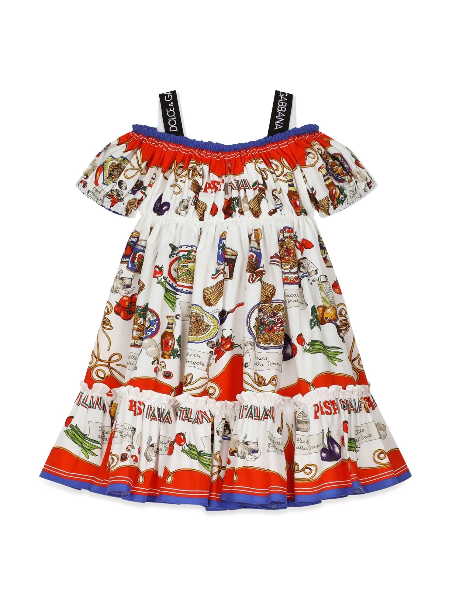 Get ready with a stylish laid-back look wearing the Pasta dress from Golden Goose Deluxe Brand. It features elasticized neckline with brand straps, short elasticized sleeves, and an all-over printed detail. The dress has a flattering silhouette creating a beautiful and sophisticated style.